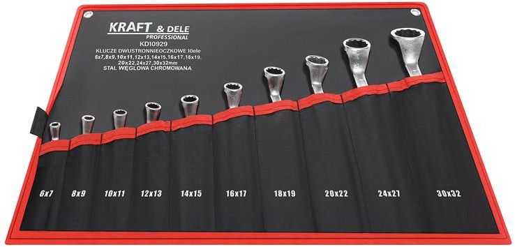 KLUCZE DWUSTRONNIE-OCZKOWE 10el. KD10929 / KD10929 / KRAFT&DELE to zestaw kluczy dwuustronnie-oczkowych, który dobrze odnajduje się w codziennych pracach montażowych i serwisowych. Zakres rozmiarów pozwala wygodnie obsłużyć wiele typowych połączeń śrubowych bez konieczności kompletowania narzędzi osobno.