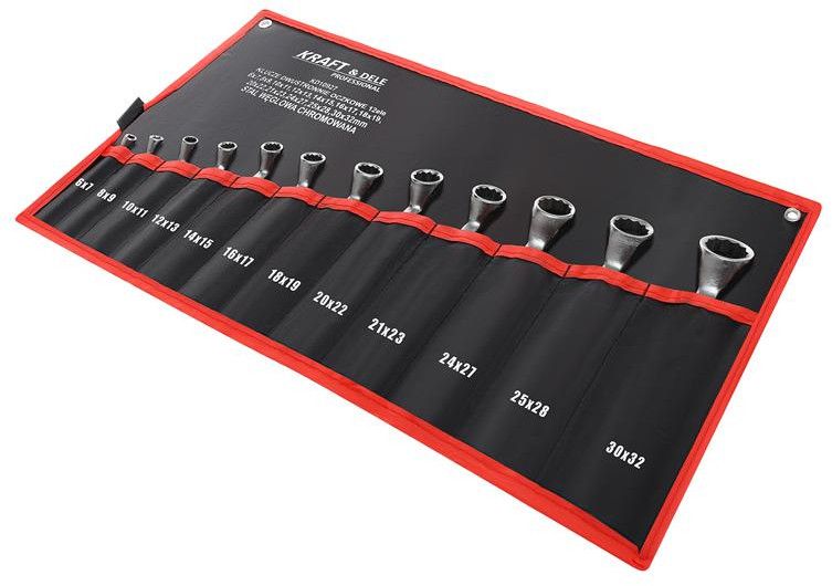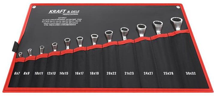 Zestaw KLUCZE DWUSTRONNIE-OCZKOWE 12el. KD10927 / KD10927 / KRAFT&DELE sprawdzi się wszędzie tam, gdzie liczy się pewny chwyt na nakrętce i wygodna praca w różnych rozmiarach. Klucze dwustronnie-oczkowe są dobrym wyborem do obsługi połączeń śrubowych w warsztacie oraz przy pracach serwisowych.
