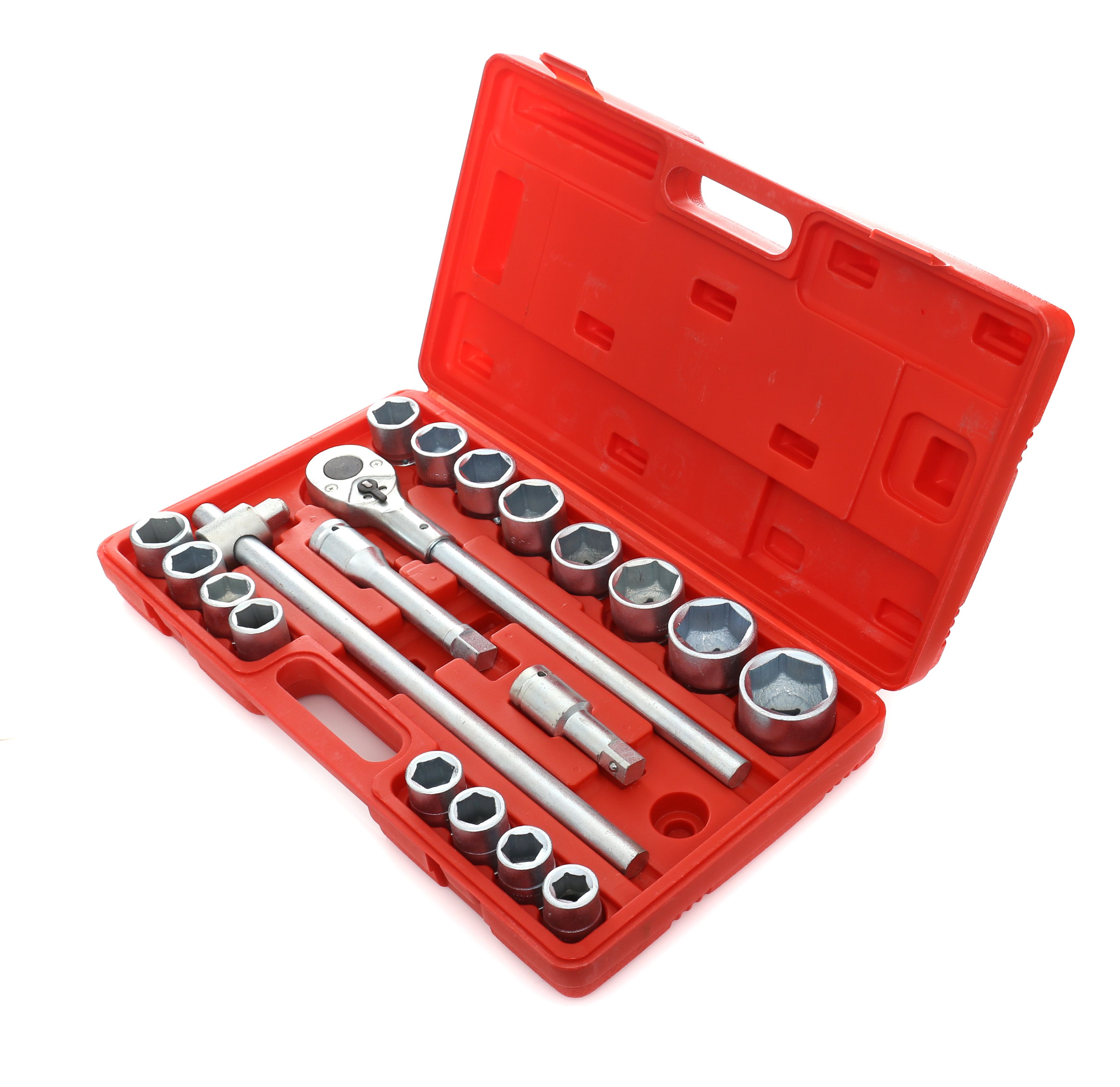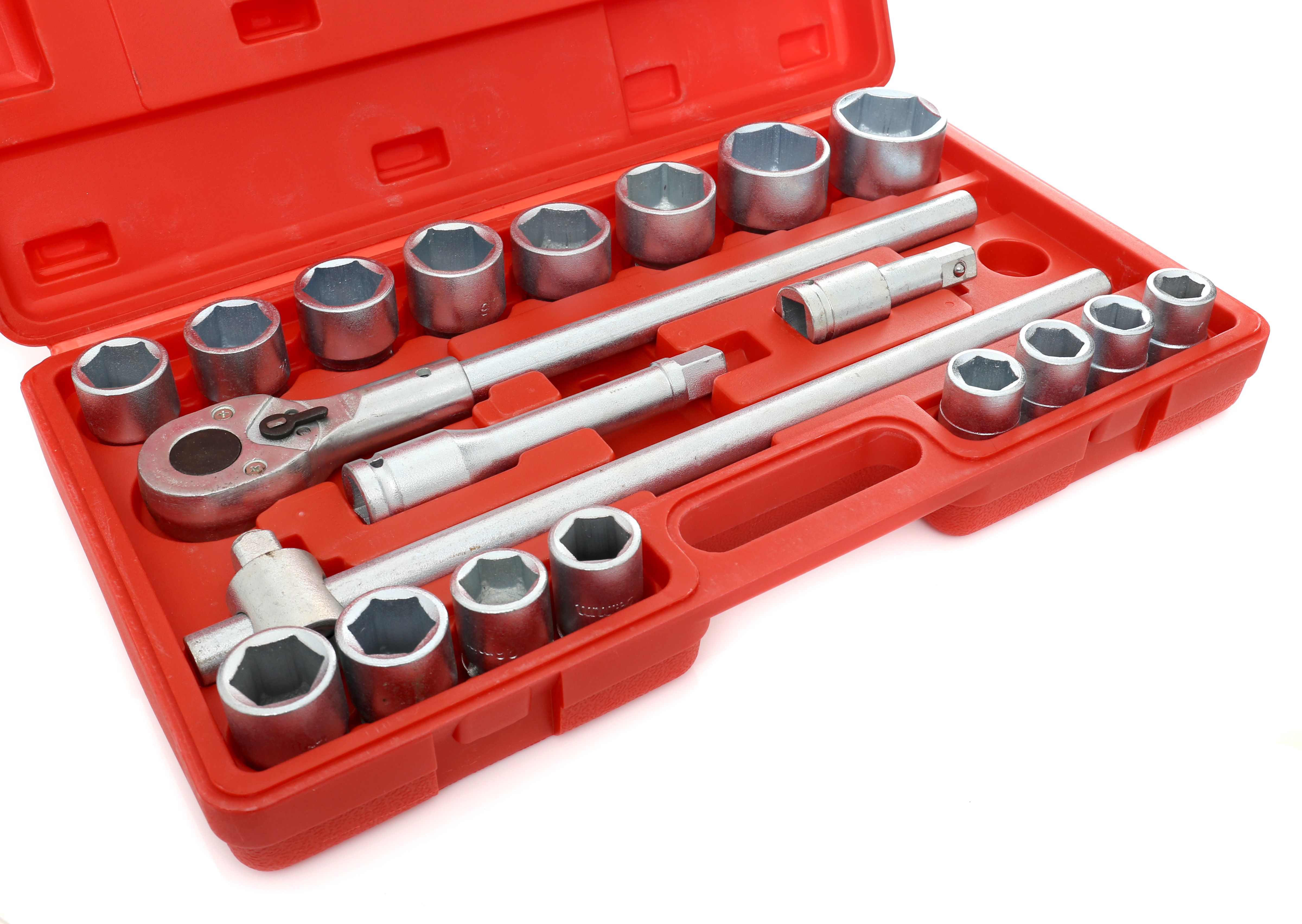 Zestaw kluczy nasadowych Klucze Nasadowe 3/4 Duże Nasadki KD304 został przygotowany z myślą o pracach, w których liczy się duży zakres rozmiarów i wygodna dźwignia. Model KD304 dobrze odnajduje się w warsztacie, przy serwisie oraz w pracach montażowych wymagających solidnych nasadek.