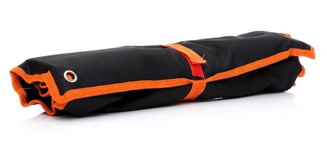 Tetron (poliester techniczny) to materiał odporny na ścieranie i rozdarcia, stosowany m.in. w wyrobach technicznych i roboczych. Pokrowiec chroni klucze przed kurzem i wilgocią podczas przechowywania oraz ułatwia transport zestawu. Każdy klucz ma wydzielone miejsce, co zapobiega wzajemnemu uderzaniu narzędzi i uszkodzeniu powierzchni satynowej.