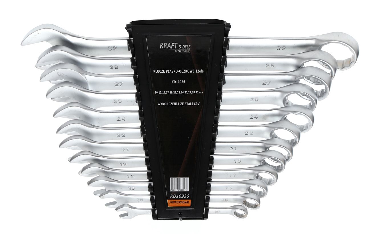 KLUCZE PŁASKO-OCZKOWE 12el. KD10936 / KRAFT&DELE to zestaw kluczy płasko-oczkowych, który porządkuje pracę i pozwala szybciej przechodzić przez typowe zadania montażowe i serwisowe. Jeśli szukasz solidnego kompletu ze stali CRV w szerokim zakresie rozmiarów, model KD10936 będzie rozsądnym wyborem do codziennego użytkowania.