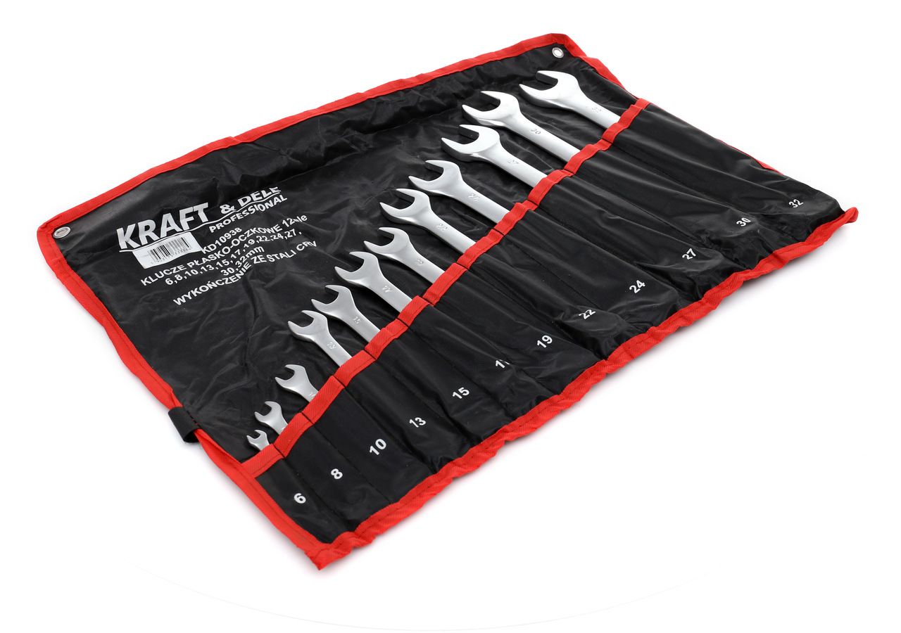 KLUCZE PŁASKO-OCZKOWE 12el. KD10938 / KD10938 / KRAFT&DELE to praktyczny zestaw kluczy płasko-oczkowych ze stali CRV, który sprawdzi się w codziennych naprawach i pracach montażowych. Jeśli szukasz kompletu o rozsądnym doborze rozmiarów, model KD10938 będzie pewnym wyborem do warsztatu i garażu.