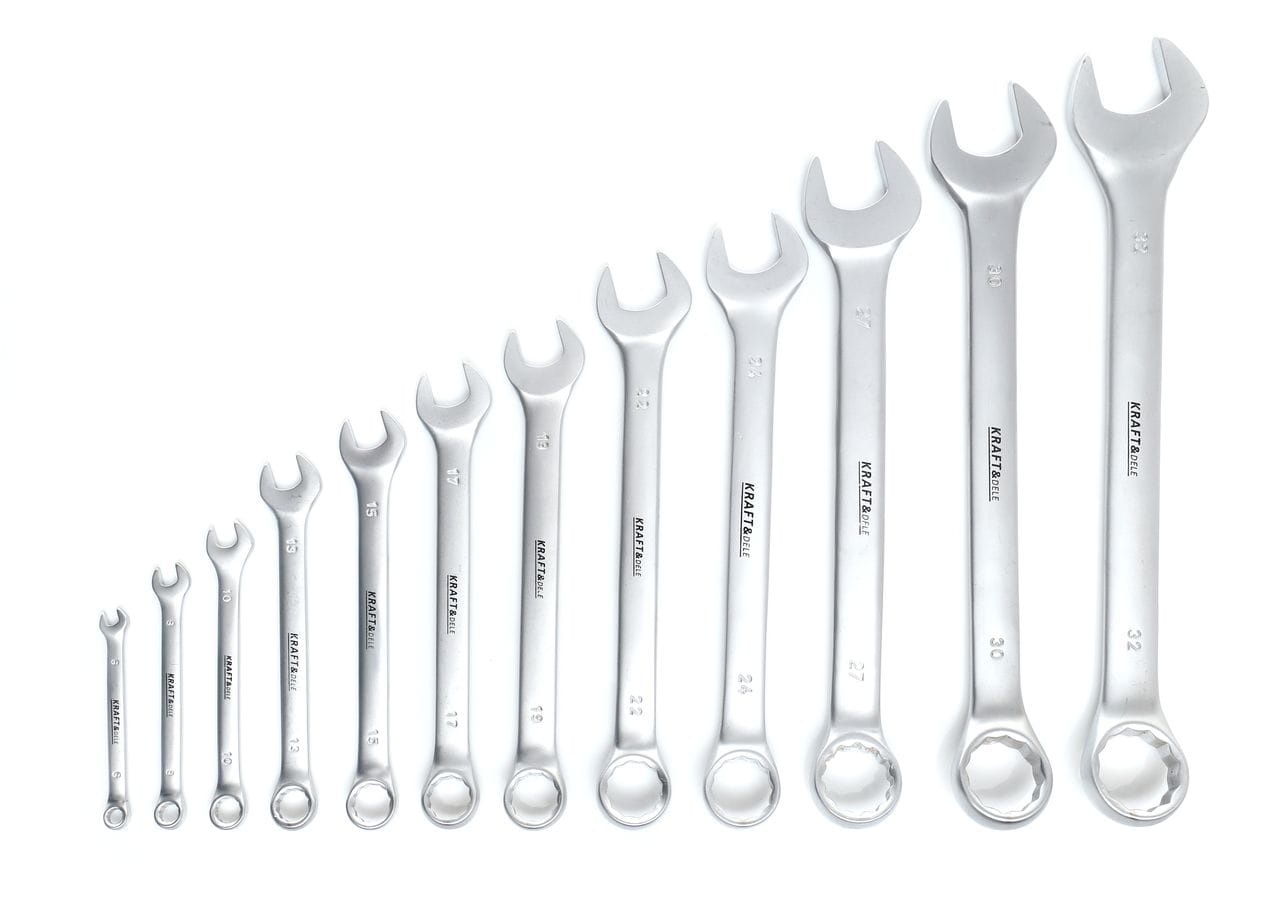 12 rozmiarów od 6 do 32 mm pokrywa zdecydowaną większość standardowych połączeń metrycznych spotykanych w motoryzacji, maszynach przemysłowych i instalacjach. Eliminuje konieczność dobierania kluczy z kilku oddzielnych zestawów.