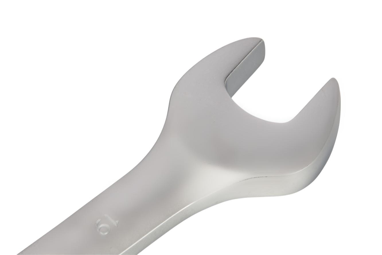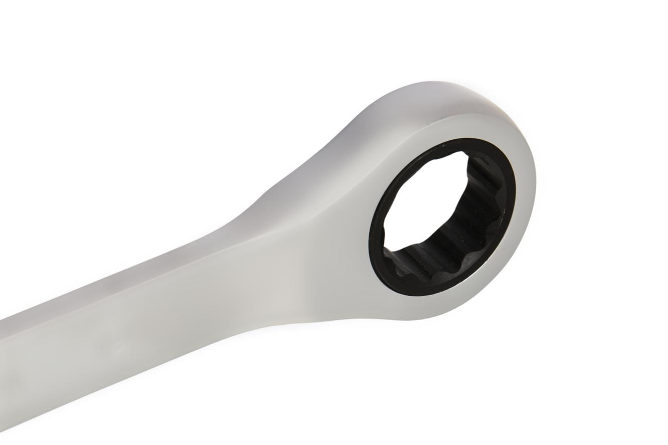 Wbudowana grzechotka w części oczkowej umożliwia ciągłą pracę bez zdejmowania klucza z nakrętki lub śruby po każdym obrocie. Skraca czas montażu i demontażu, szczególnie przy powtarzalnych operacjach lub dużej liczbie połączeń śrubowych.
