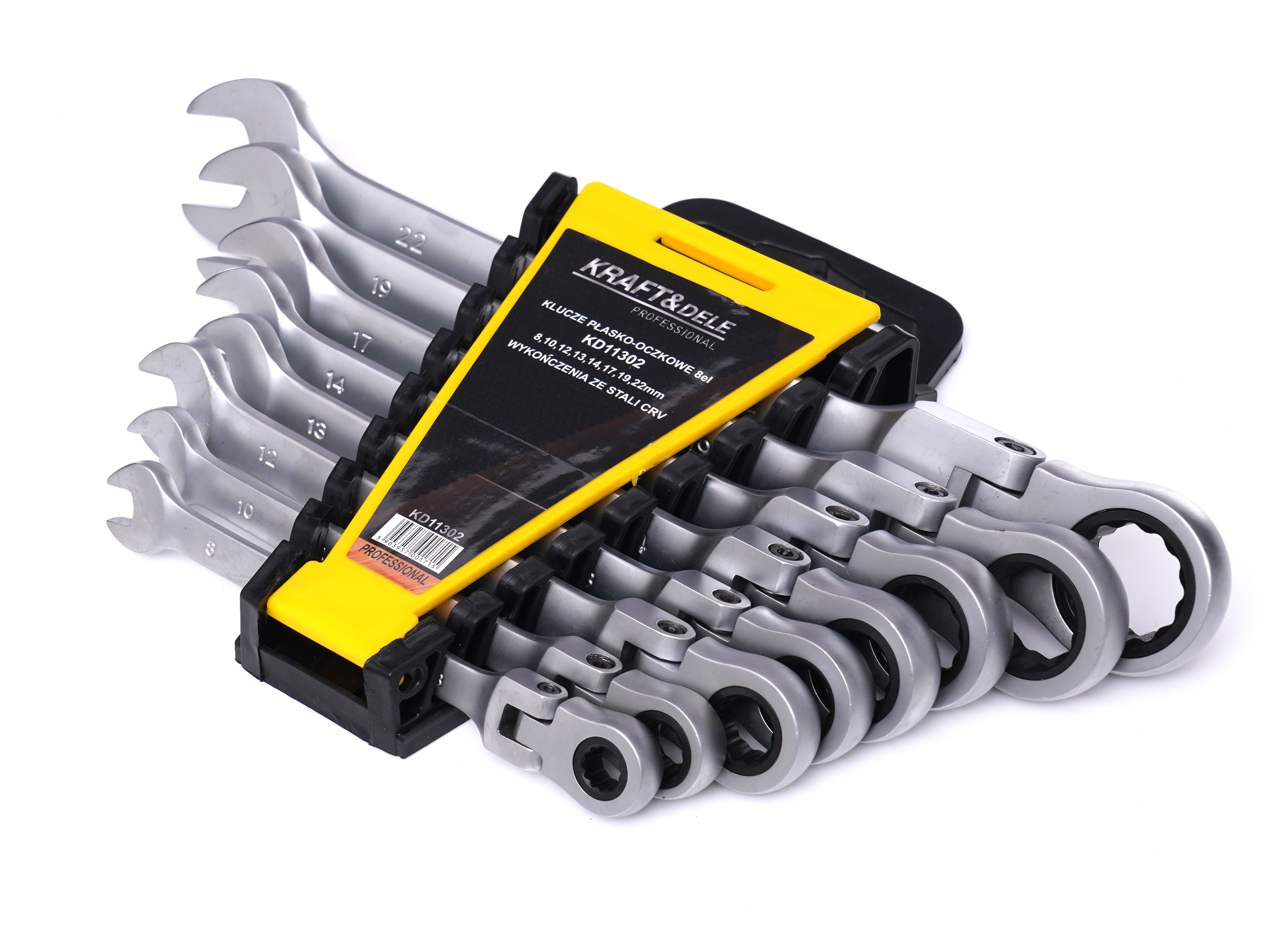 KLUCZE PŁASKO-OCZKOWE 8szt. KD11302 / KD11302 / KRAFT&DELE to zestaw kluczy płasko-oczkowych z grzechotką, który realnie przyspiesza odkręcanie i dokręcanie bez zbędnych przerw. Jeśli szukasz solidnych kluczy z grzechotką do warsztatu, instalacji lub prac domowych, model KD11302 będzie praktycznym wyborem na co dzień.