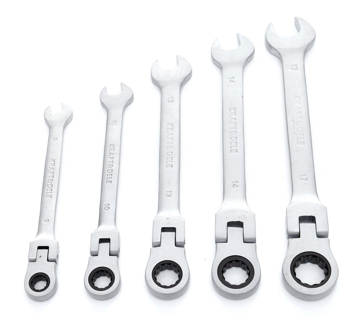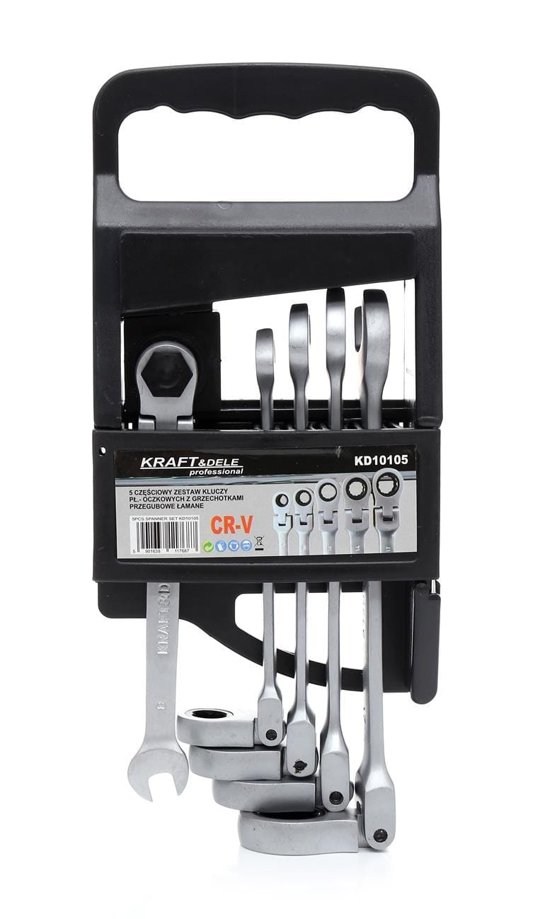 Zestaw kluczy płasko-oczkowych z wbudowanym mechanizmem grzechotkowym i łamaną główką. Połączenie kompaktowych rozmiarów z funkcjonalnością grzechotki umożliwia pracę w ograniczonej przestrzeni. Oczko wyposażone w końcówkę Surface Drive pozwala na odkręcanie śrub z uszkodzonym lub ześlizgniętym łbem.