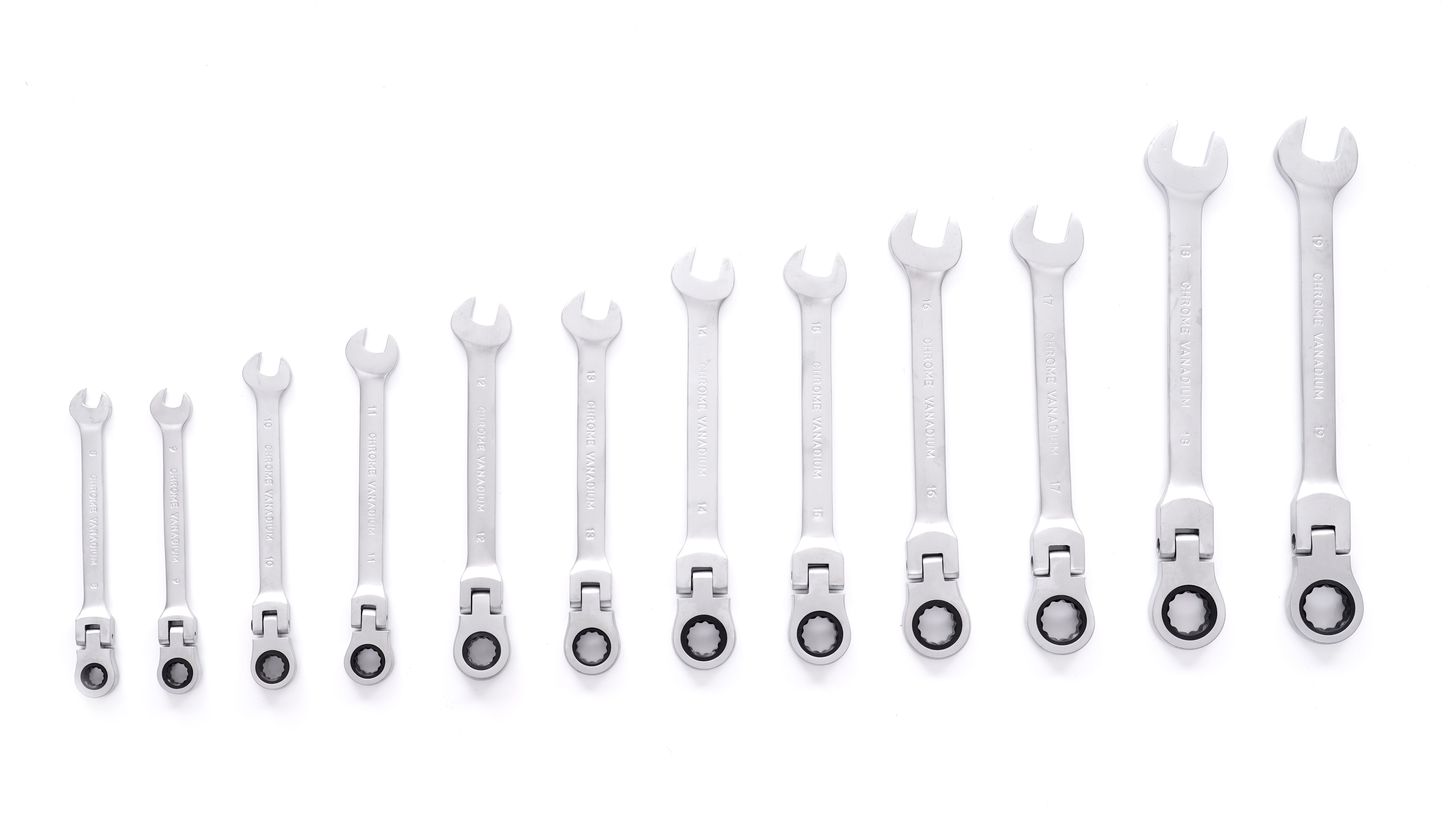 Łamana konstrukcja ułatwia operowanie kluczem w trudno dostępnych miejscach, bez kompromisu na wygodzie.