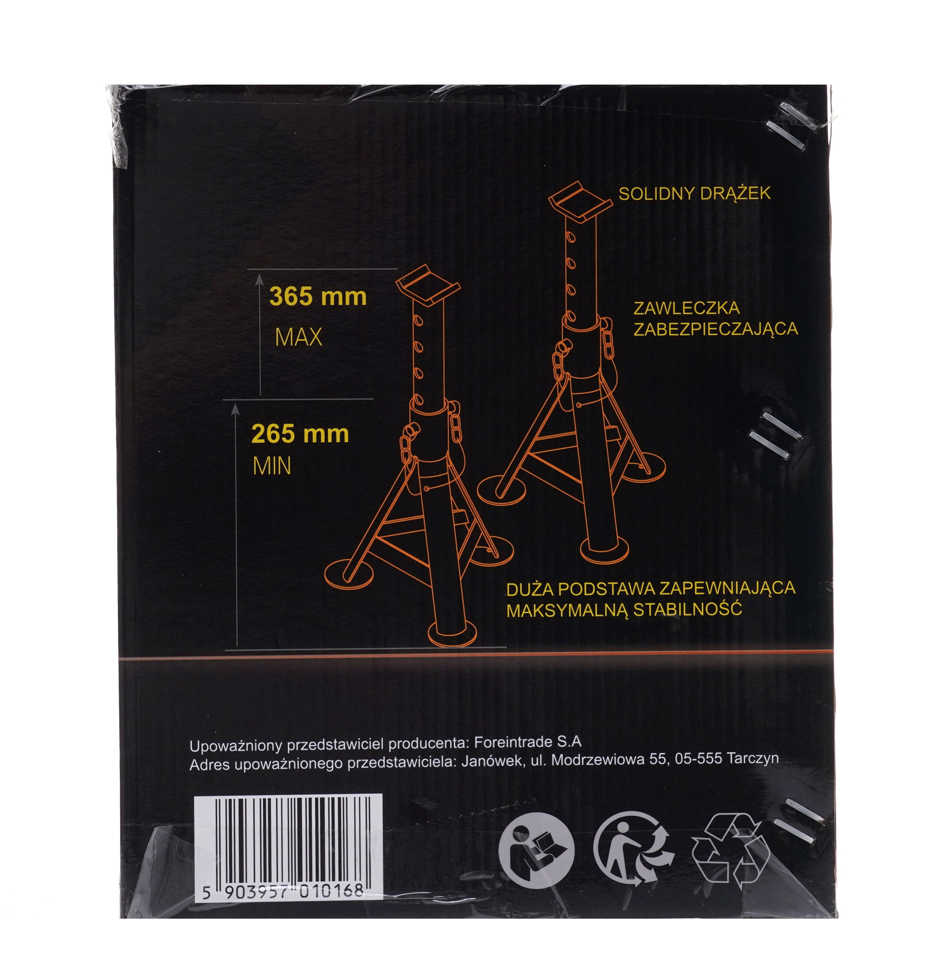 Kobyłki samochodowe Kraft&Dele KD3180 są przeznaczone do stabilnego podpierania pojazdu podczas prac wykonywanych pod autem. Regulowany zakres 265–365 mm ułatwia dopasowanie wysokości do sytuacji serwisowej.