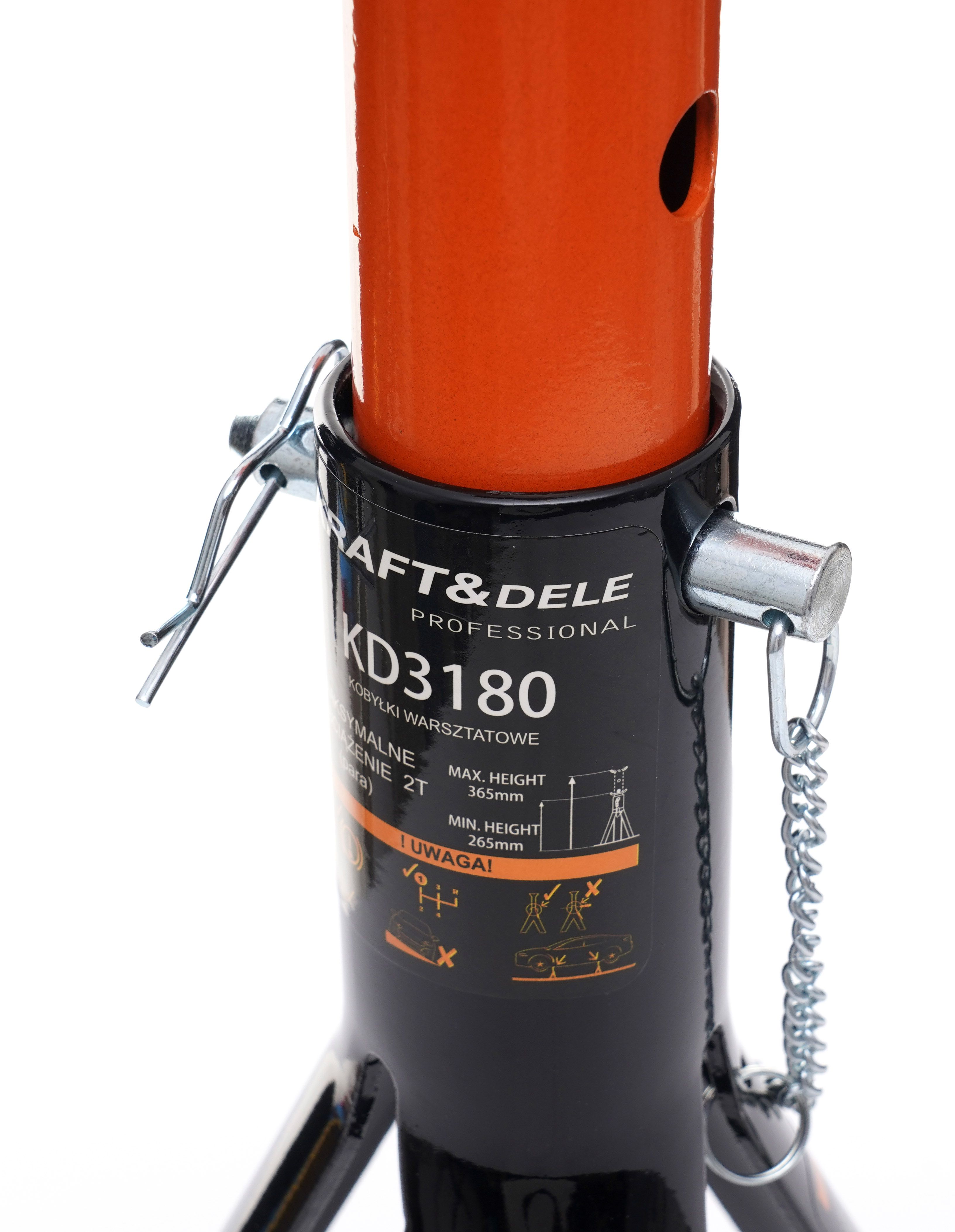 Kobyłki samochodowe 2T 265-365 mm KD3180 KRAFT&DELE to solidne, regulowane podparcie do prac serwisowych pod pojazdem. Jeśli szukasz stabilnych kobyłek samochodowych z udźwigiem 2T i prostą regulacją, model KD3180 będzie praktycznym wyborem do garażu i warsztatu.