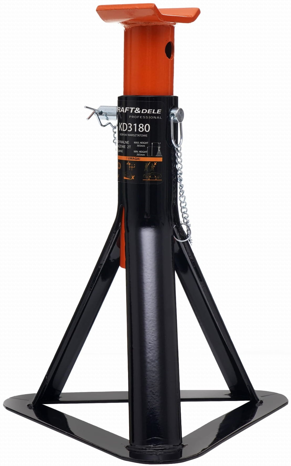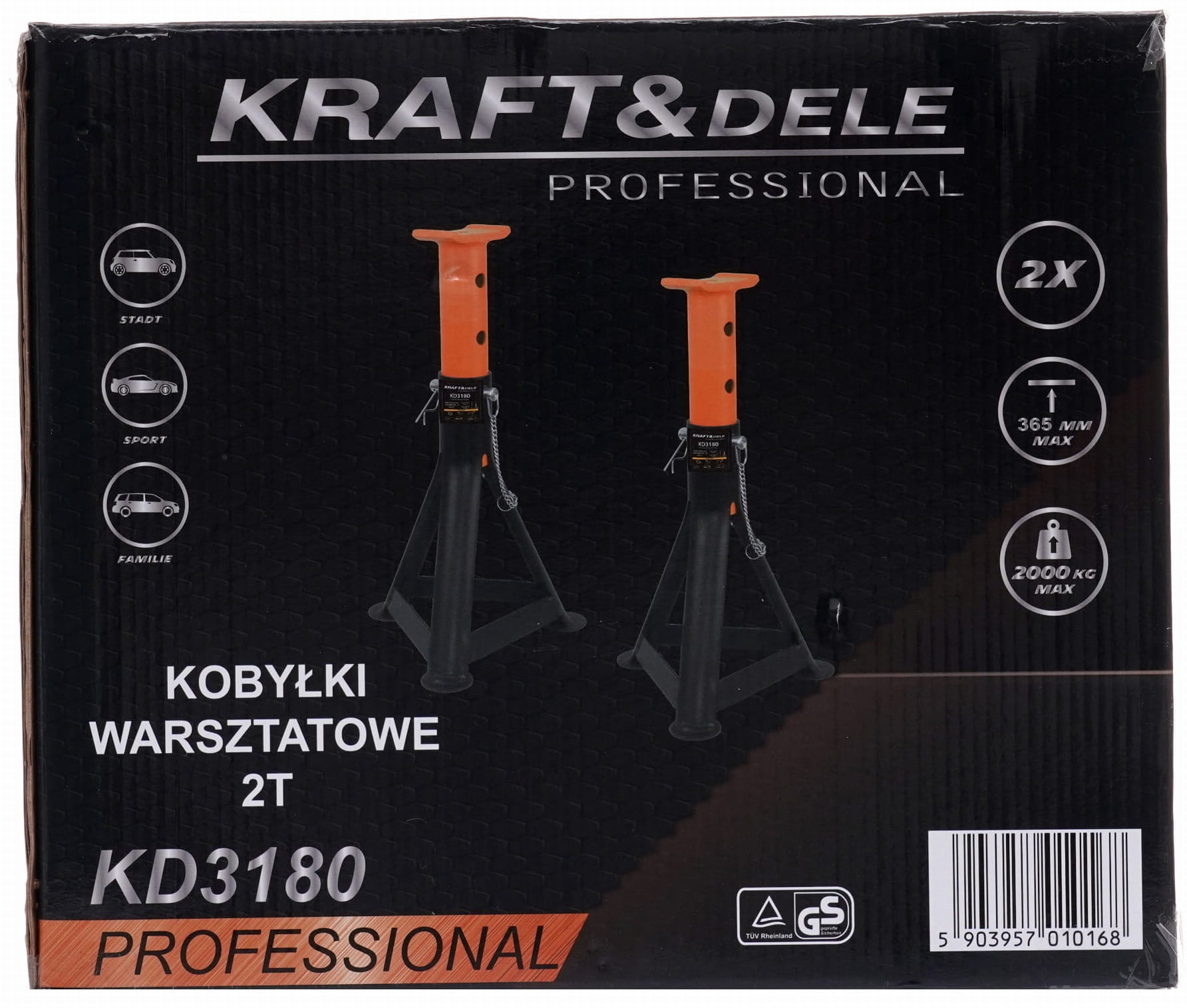 Stalowe podpory warsztatowe przeznaczone do podparcia pojazdu podczas prac serwisowych, naprawczych i konserwacyjnych. Model KD3180 marki KRAFT&DELE dostępny jest w zestawie dwóch sztuk — co stanowi kompletne wyposażenie do bezpiecznego uniesienia jednej osi pojazdu.