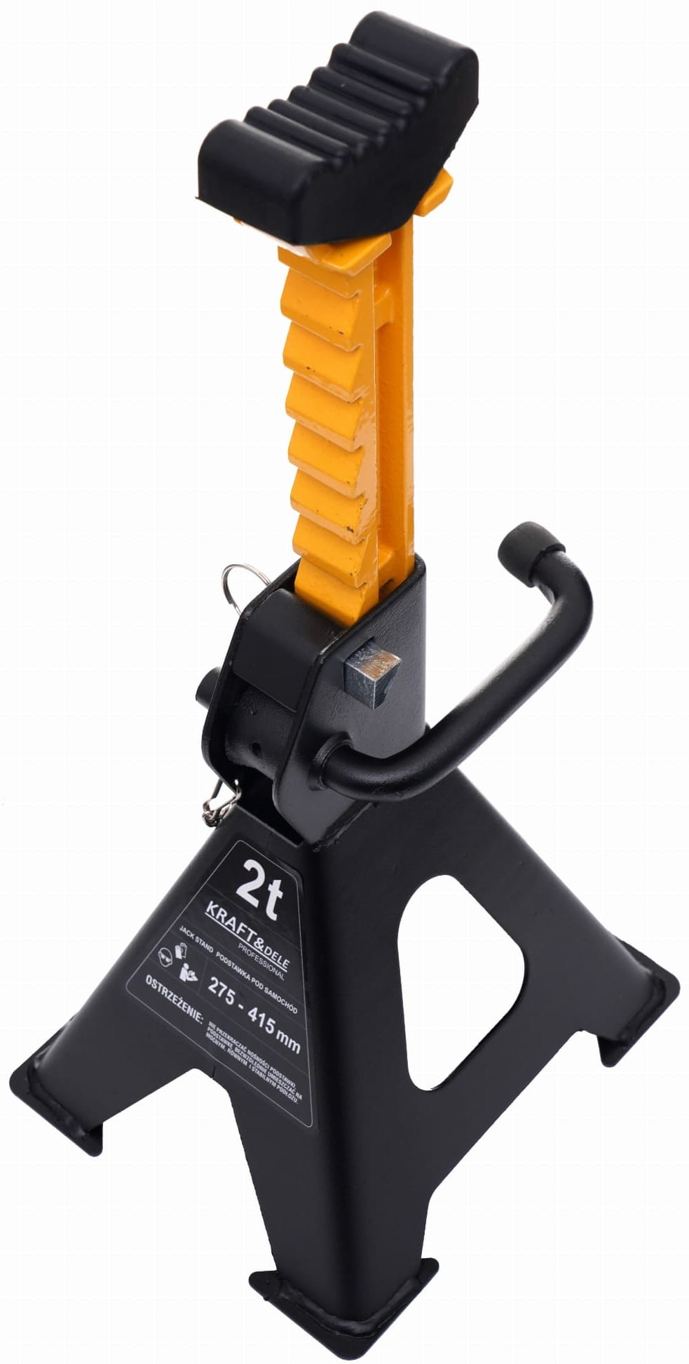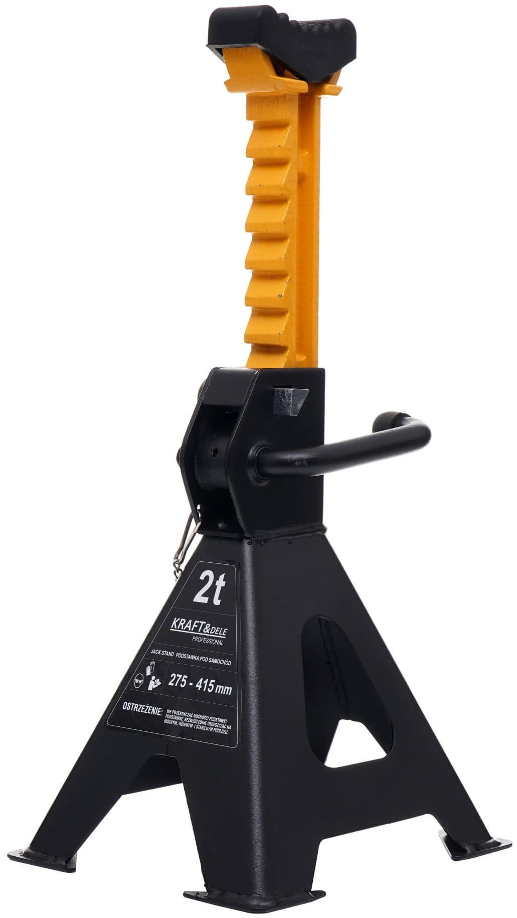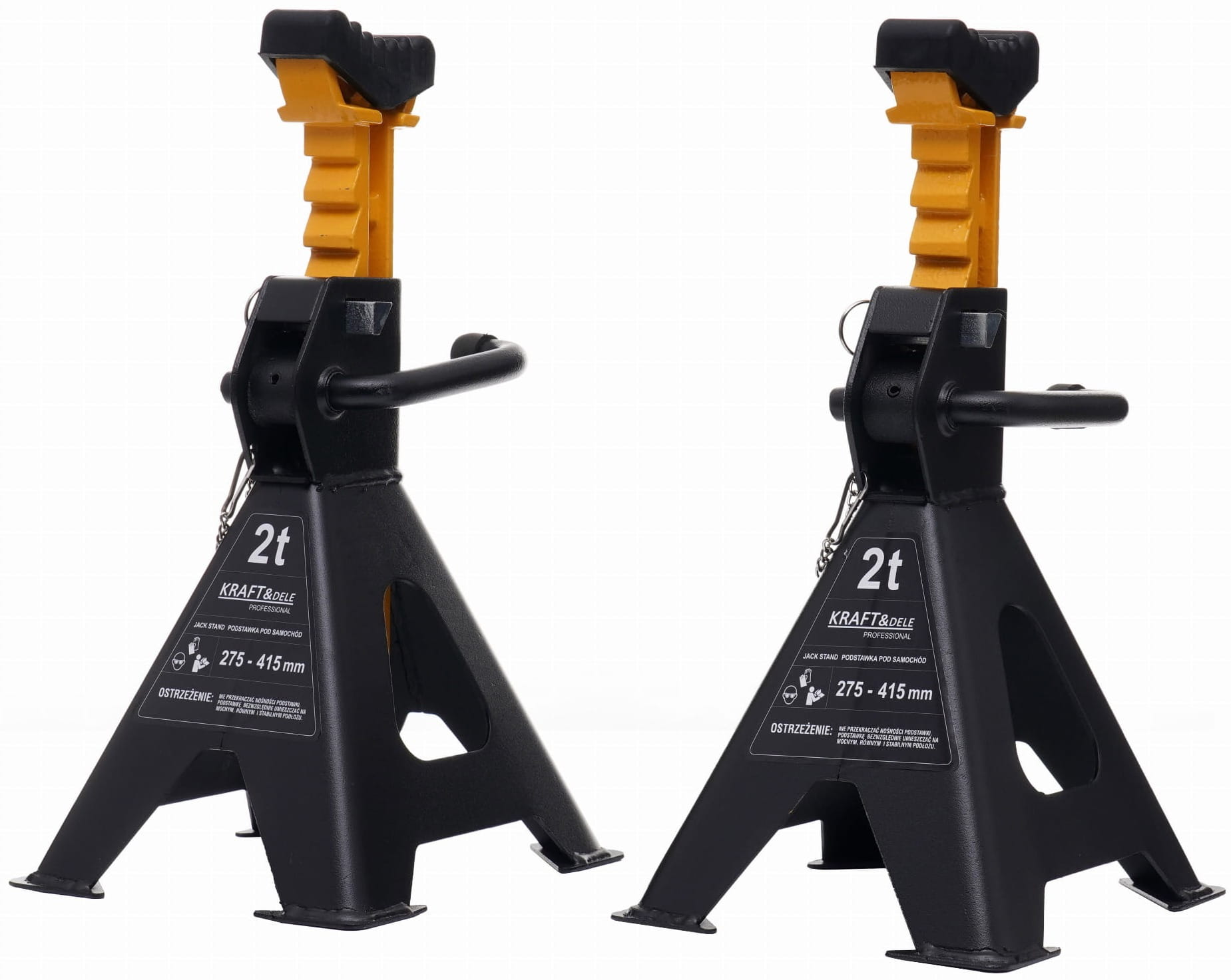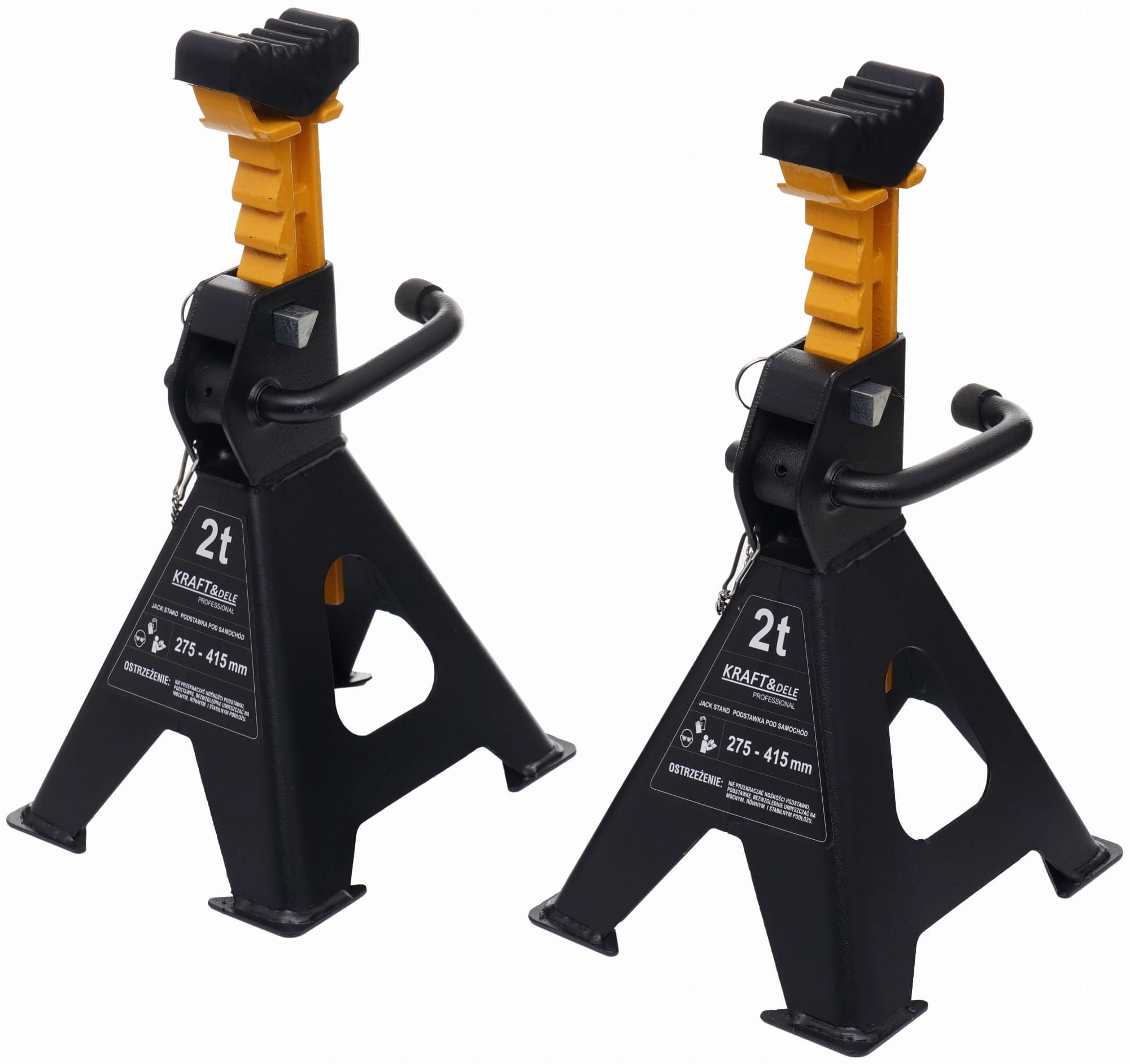 KD3095 to stalowe kobyłki warsztatowe przeznaczone do podpierania pojazdów i ciężkich elementów podczas prac serwisowych. Mechanizm zapadkowy umożliwia wielostopniową regulację wysokości, a blokada mechaniczna zabezpiecza podporę w wybranym położeniu. Zestaw zawiera dwie kobyłki.