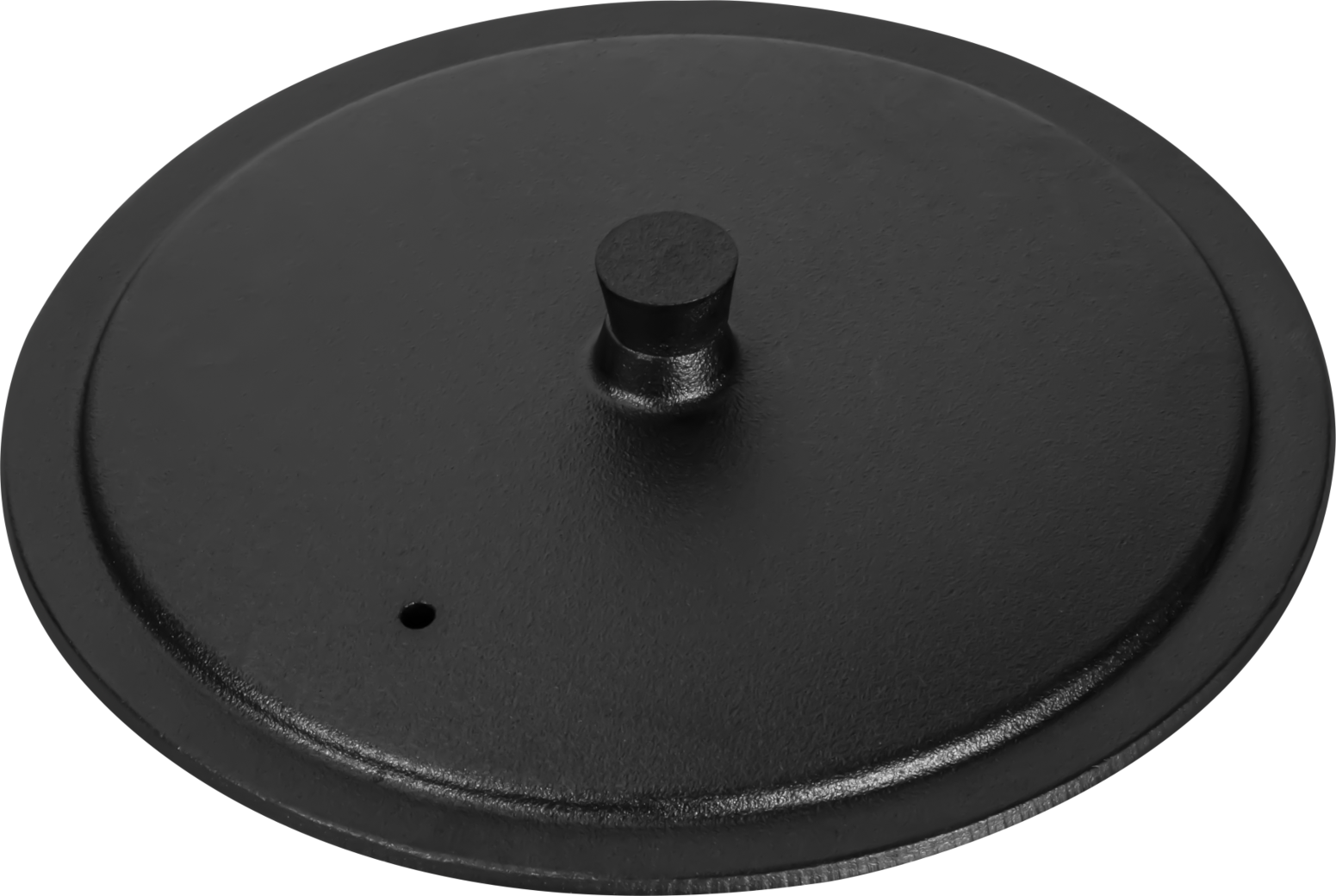 Masywna pokrywa żeliwna przylega do krawędzi garnka, ograniczając ucieczkę pary. Dzięki temu potrawy duszą się we własnych sokach, a aromaty pozostają wewnątrz naczynia. Uchwyt pokrywy mocowany jest śrubami, co eliminuje ryzyko jego poluzowania podczas użytkowania.
