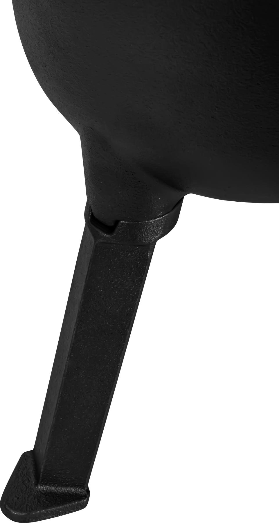 Trzy nóżki mocowane śrubami pozwalają na ustawienie kociołka bezpośrednio w żarze lub na ruszcie grilla. Konstrukcja jest demontowalna, co ułatwia transport i przechowywanie. Nóżki zapewniają stabilność nawet na nierównym podłożu.