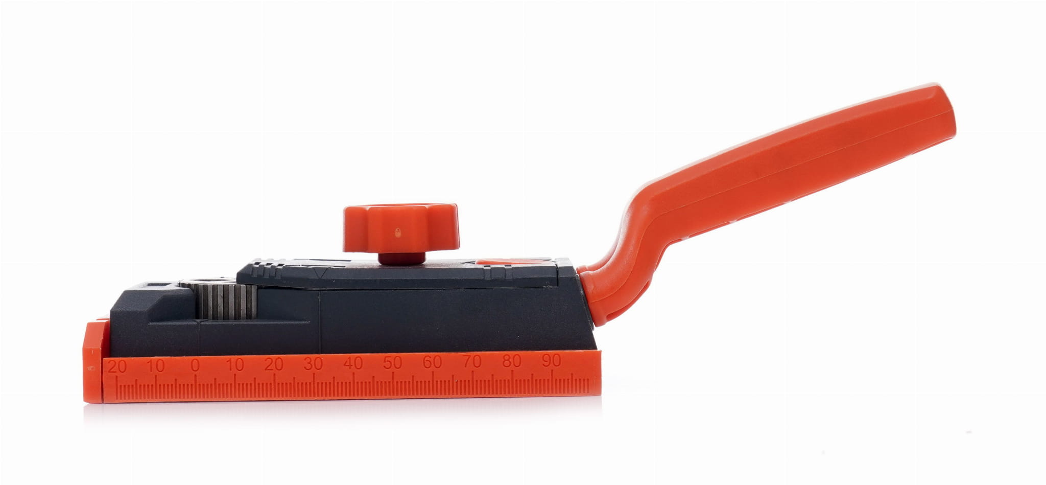 Korpus przymiaru wykonany z tworzywa odpornego na uszkodzenia mechaniczne. Materiał nie rysuje powierzchni łączonych elementów, co ma znaczenie przy pracy z okleinowanymi płytami meblowymi.
