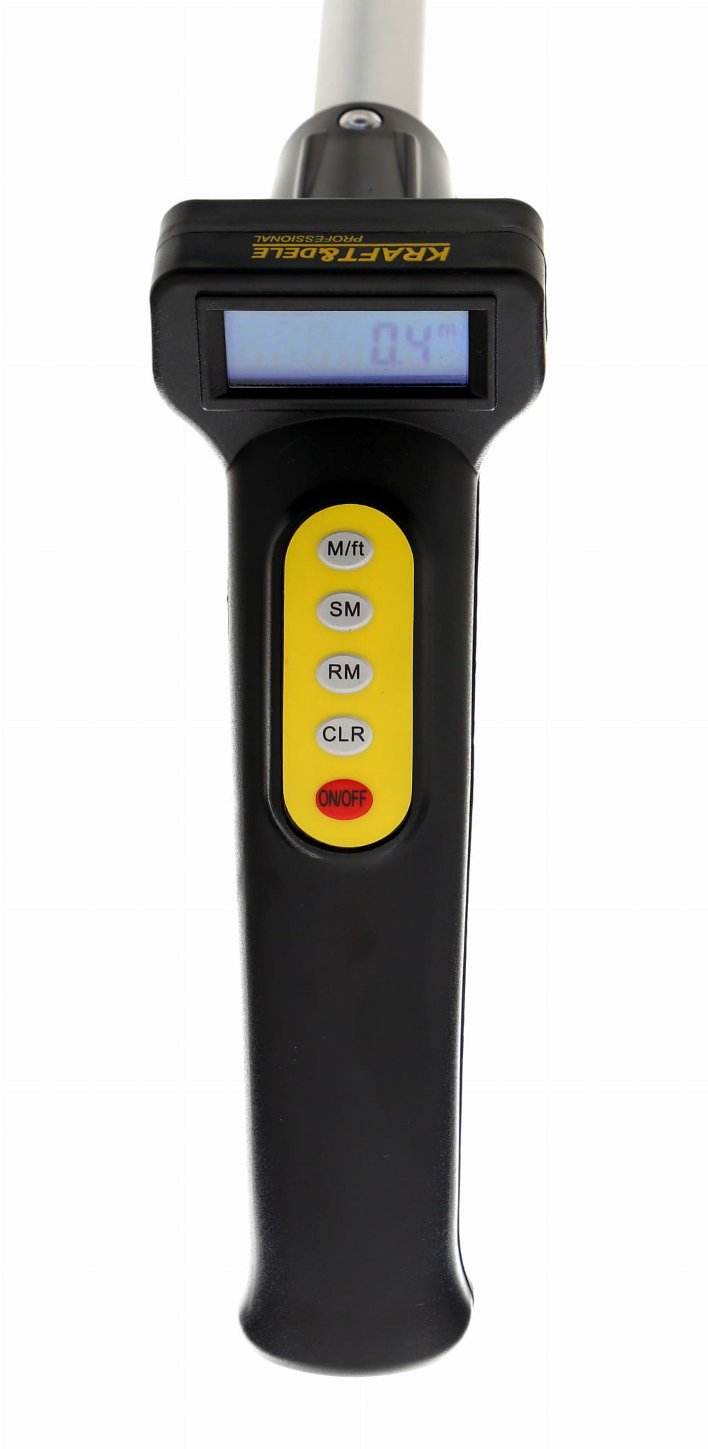 Wynik pomiaru jest wyświetlany na liczniku cyfrowym. Zakres do niemal 100 km sprawia, że urządzenie obsługuje zarówno krótkie odcinki, jak i rozległe pomiary terenowe bez konieczności resetowania wskazania w trakcie pracy.