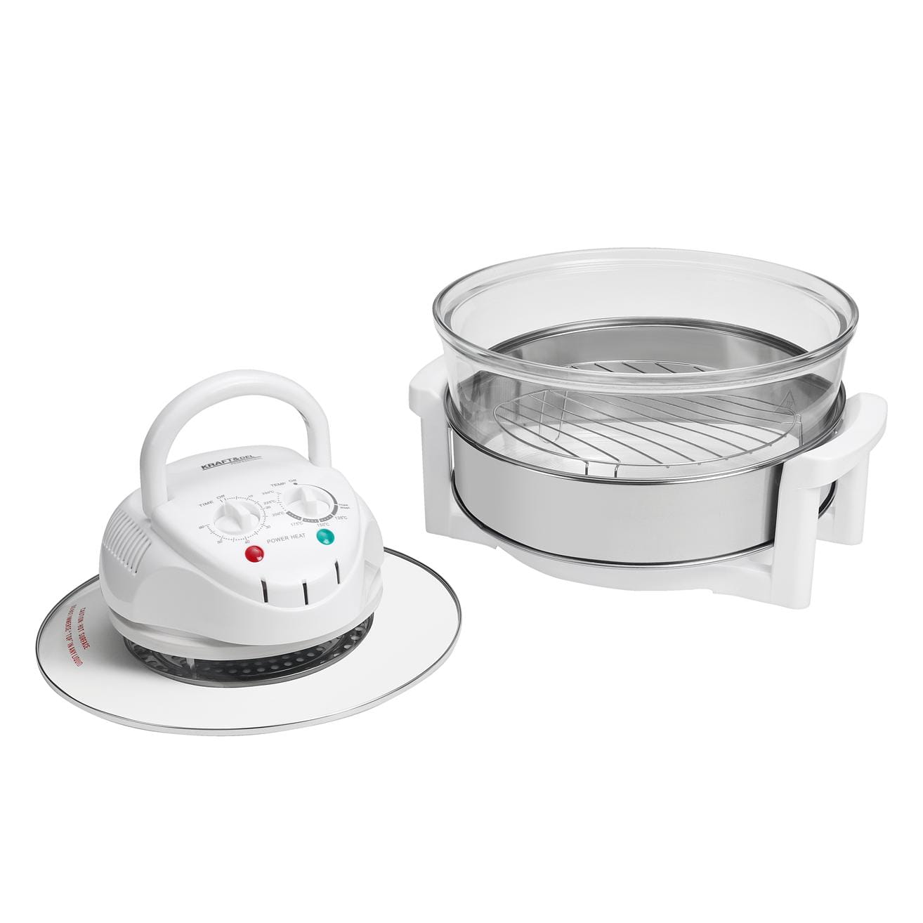 Urządzenie wielofunkcyjne z grzaniem halogenowym i termoobiegiem, zastępujące tradycyjny piekarnik. Łączy funkcje pieczenia, grillowania, opiekania, gotowania, gotowania na parze, odmrażania i podgrzewania w jednej kompaktowej misce z hartowanego szkła o pojemności 18 litrów.