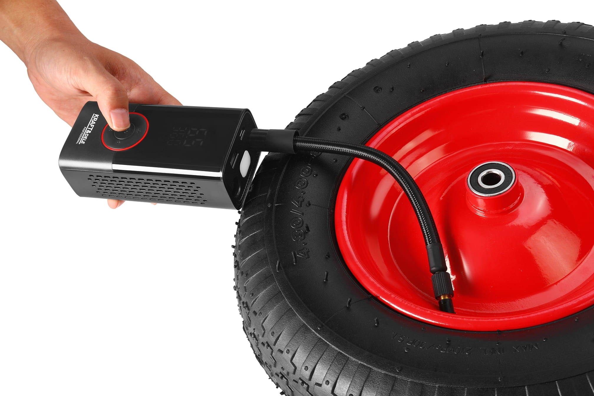 Po ustawieniu docelowego ciśnienia na wyświetlaczu LCD kompresor wyłącza się samoczynnie po jego osiągnięciu. Eliminuje to ryzyko przepompowania opony lub materaca i pozwala wykonać zadanie bez ciągłego nadzoru nad wskazaniami manometru.