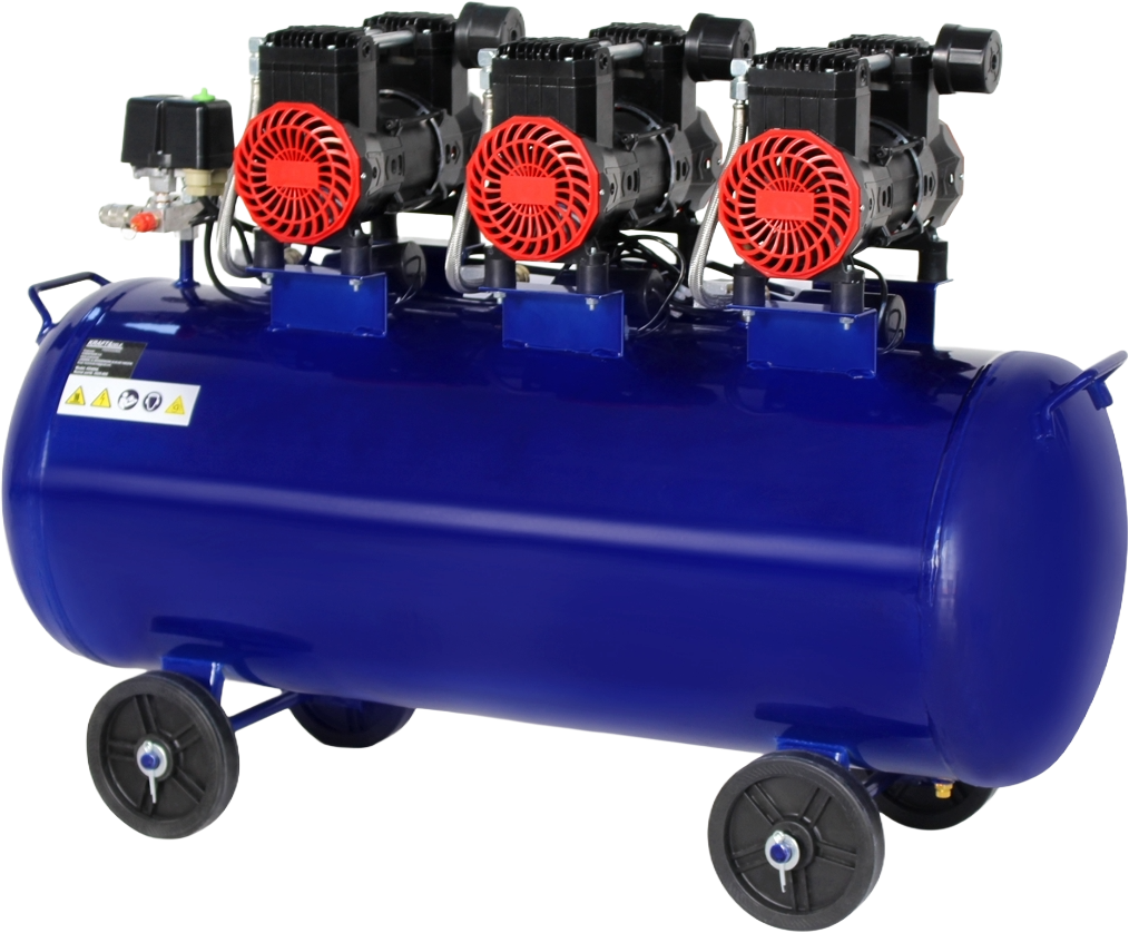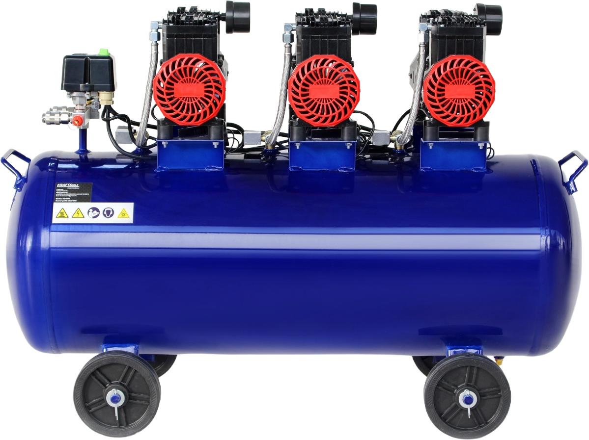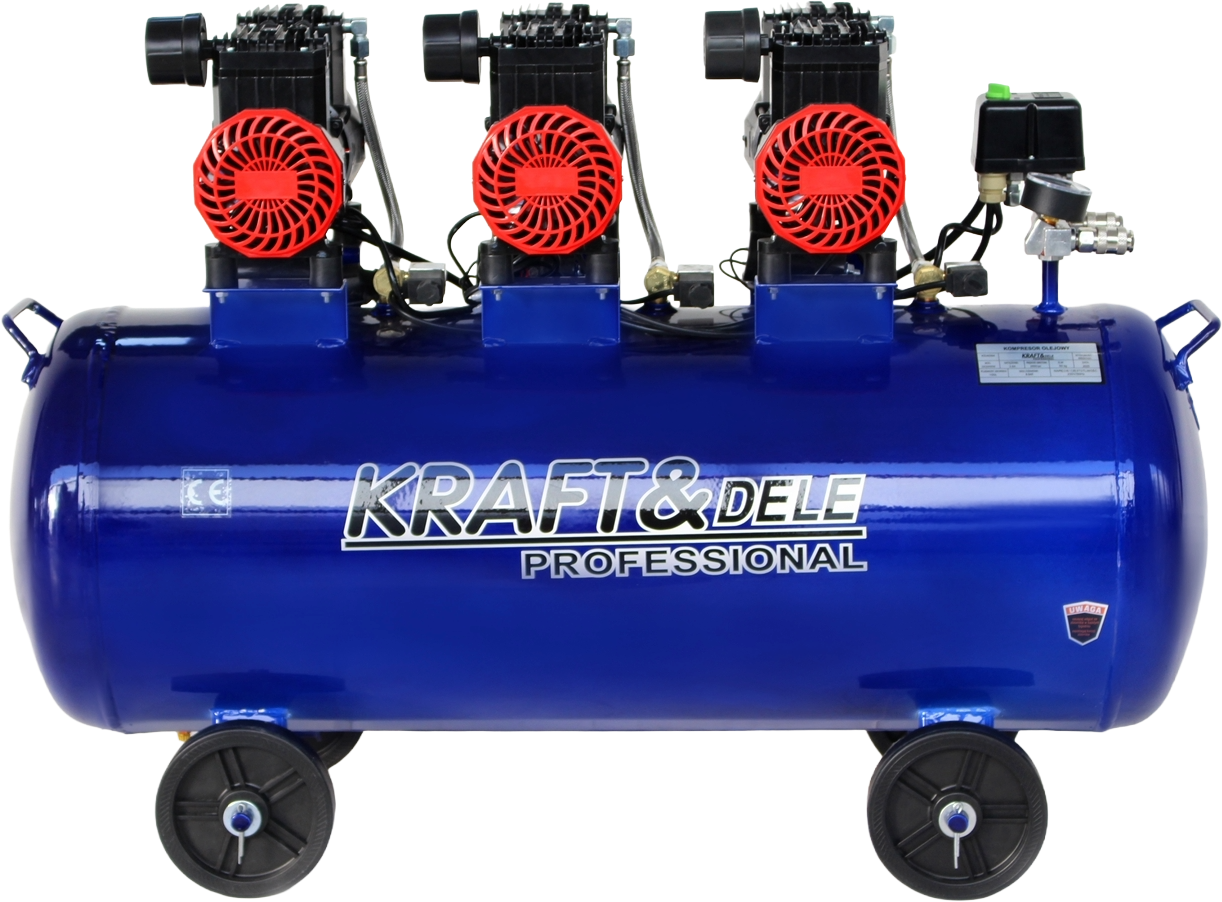 KD4094 to trójgłowicowy kompresor bezolejowy ze zbiornikiem 100 litrów, przeznaczony do stałej pracy warsztatowej i garażowej. Bezolejowa konstrukcja eliminuje konieczność smarowania i stosowania filtrów oleju, co upraszcza eksploatację i zapewnia czystość sprężonego powietrza.