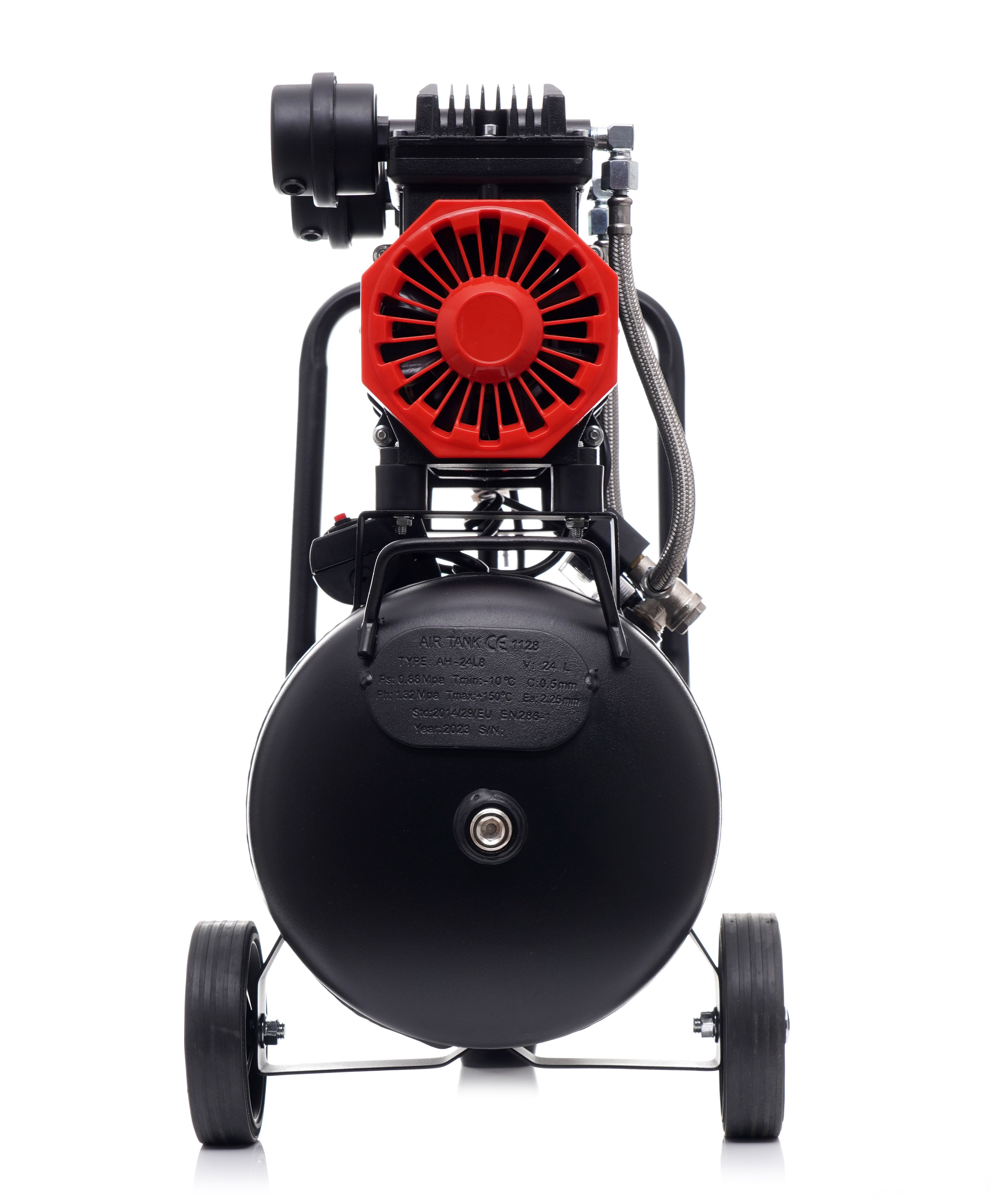 Uchwyt do przenoszenia i duże koła pozwalają wygodnie przestawić kompresor bezolejowy KRAFT&DELE tam, gdzie aktualnie pracujesz.