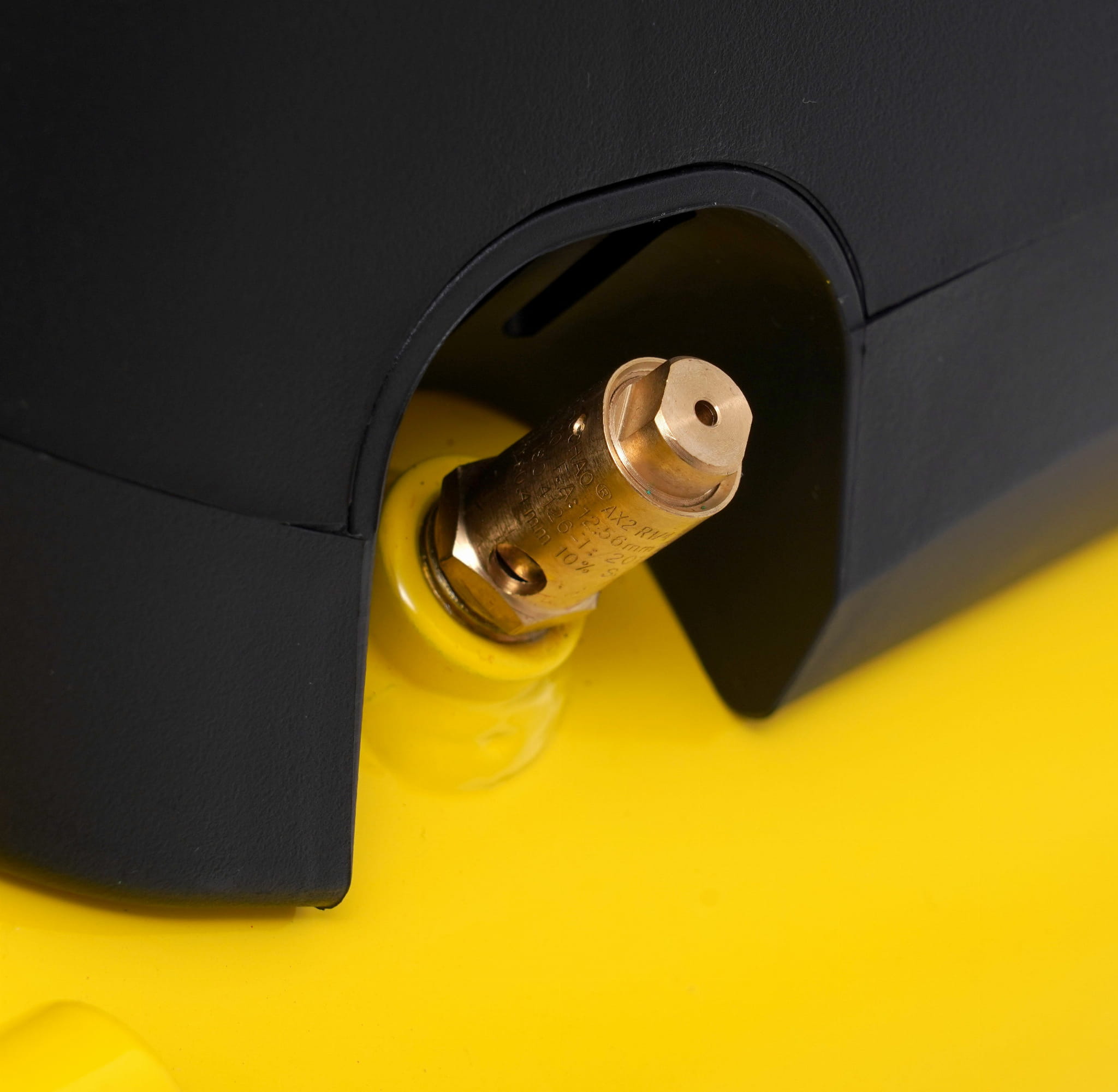 Głowica sprężarki pracuje bez oleju smarującego — powietrze wychodzące ze zbiornika nie jest zanieczyszczone oparami oleju. To istotne przy pracach lakierniczych oraz wszędzie tam, gdzie czystość powietrza ma znaczenie. Eliminuje też konieczność regularnych wymian oleju.