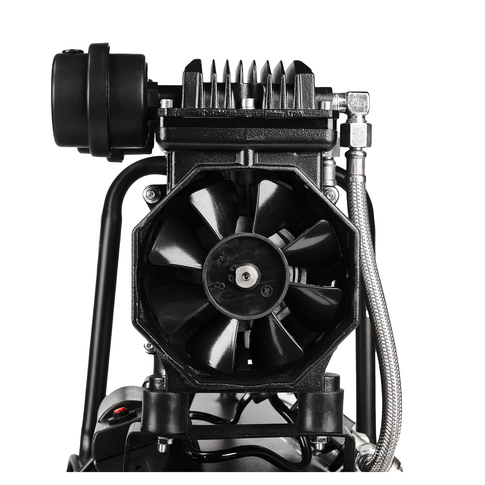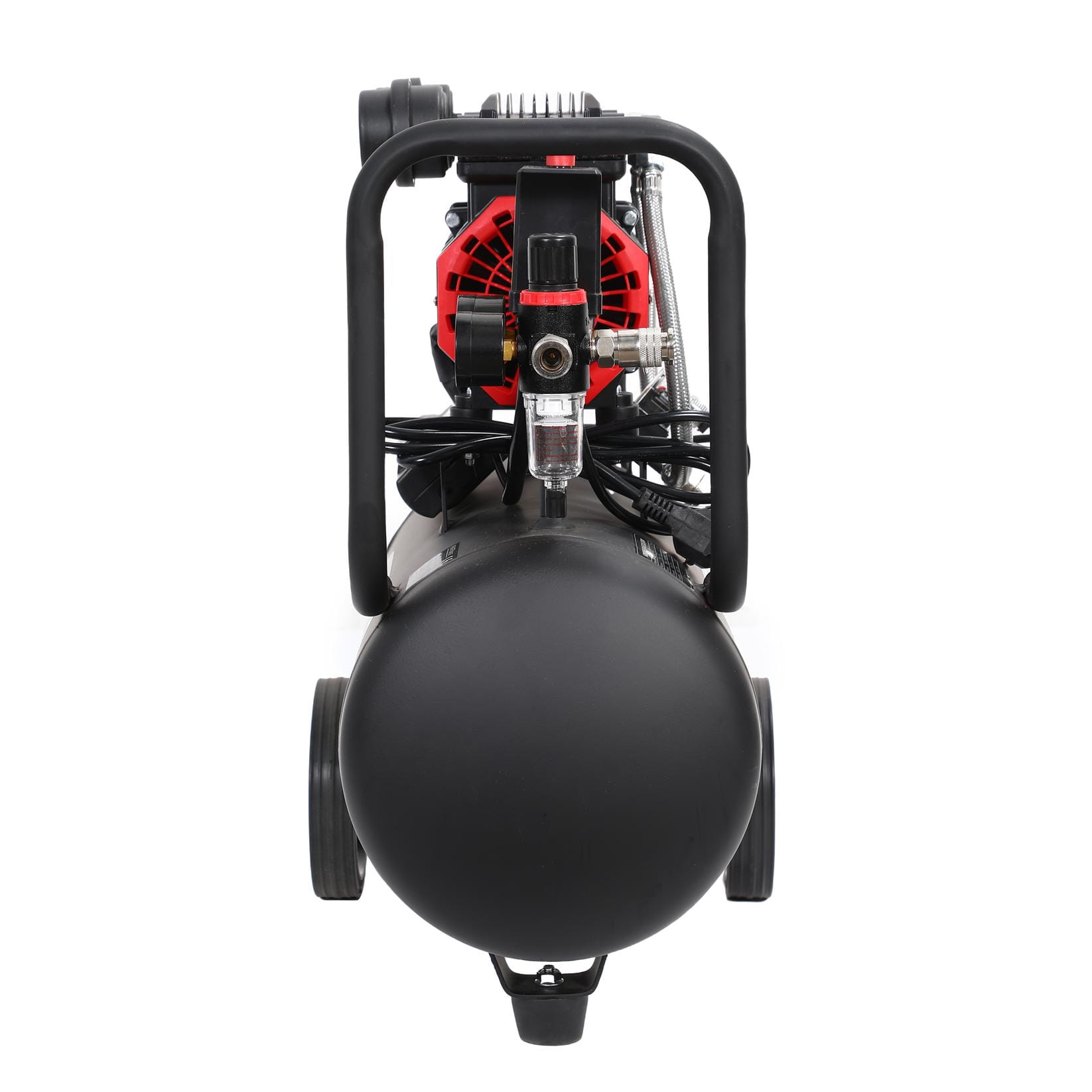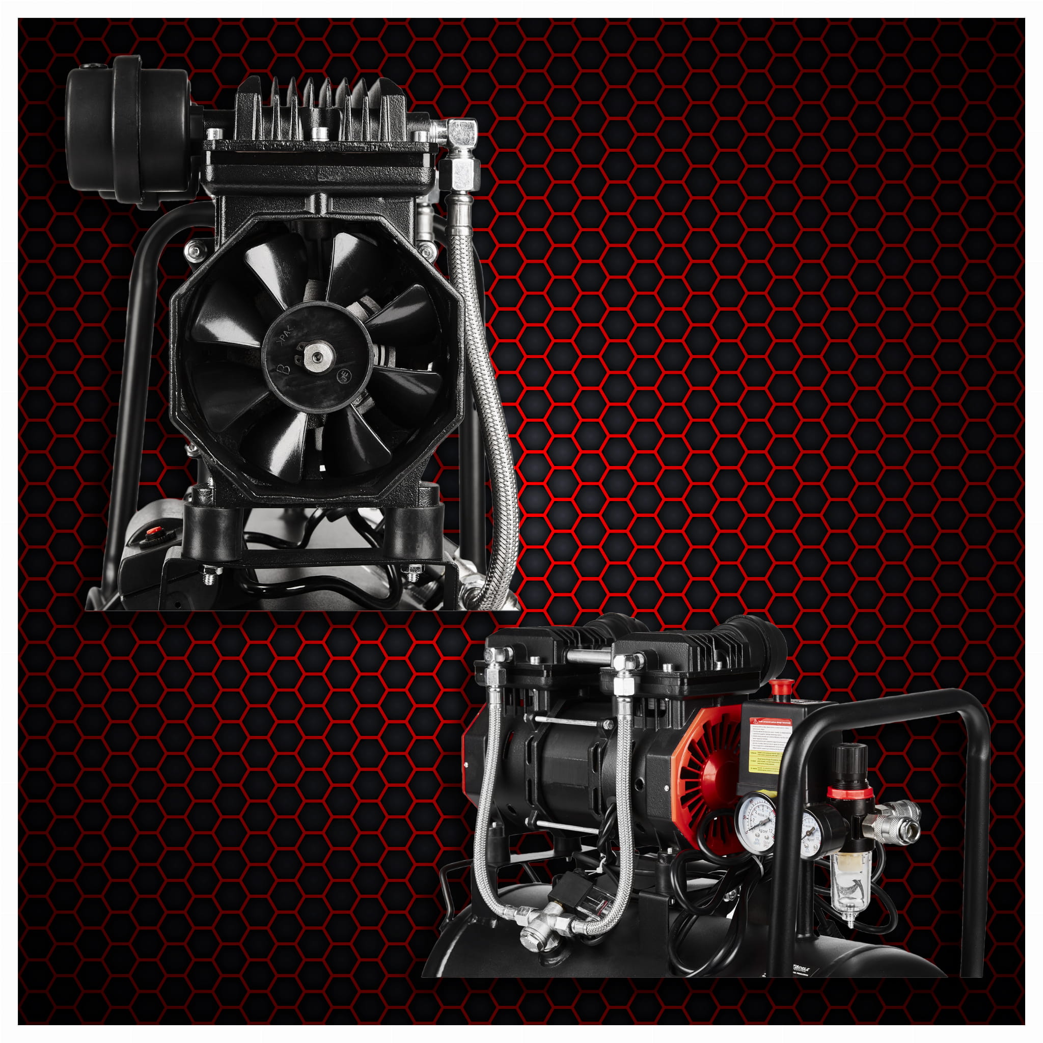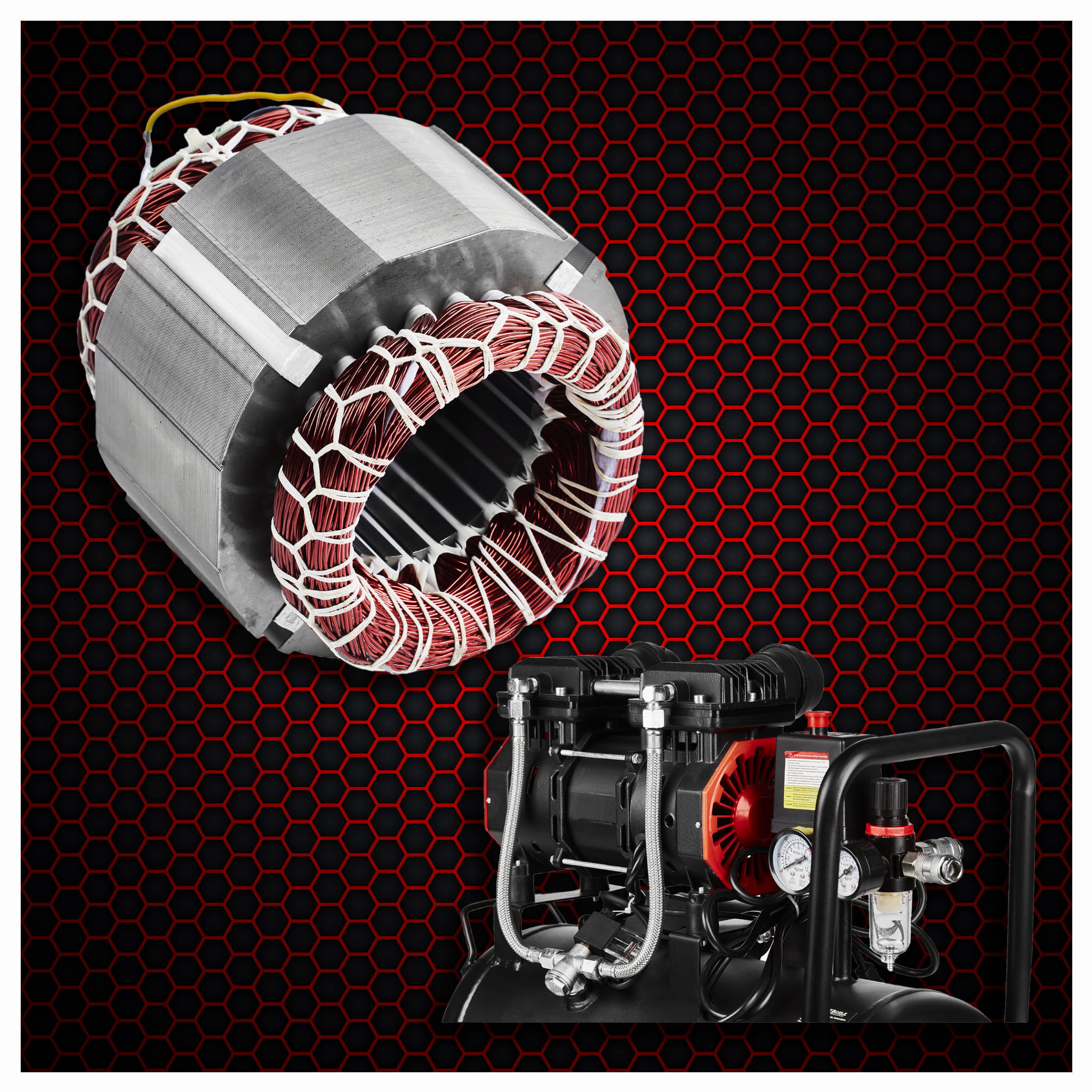 Głowica kompresora nie wymaga oleju smarowego — eliminuje to konieczność regularnej wymiany oleju i zmniejsza ryzyko zanieczyszczenia sprężonego powietrza. Rozwiązanie istotne wszędzie tam, gdzie czystość powietrza ma znaczenie, np. przy lakierowaniu lub pompowaniu opon.
