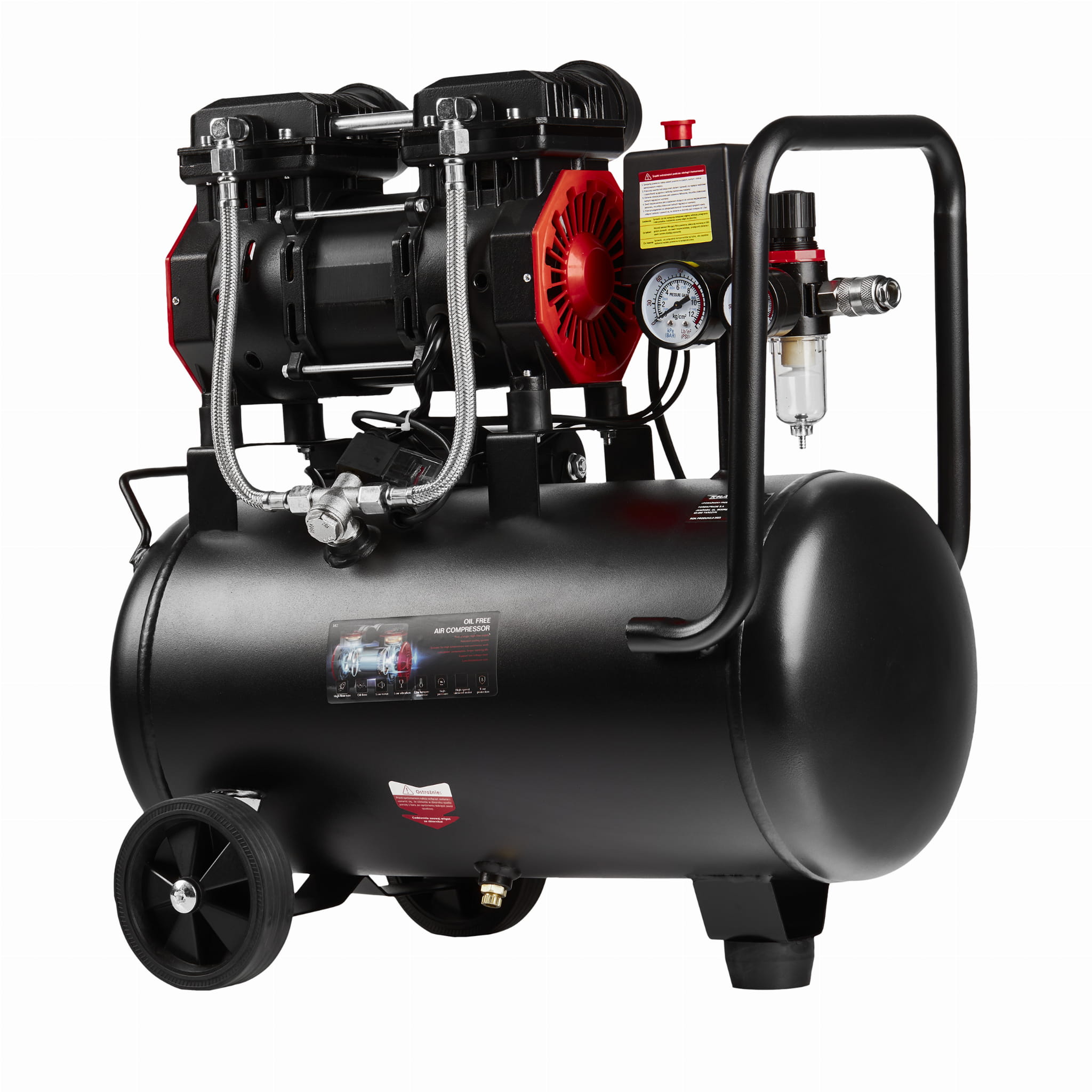 Kompresor bezolejowy nie wymaga uzupełniania ani wymiany oleju, co upraszcza czynności konserwacyjne. Zaleca się regularne odprowadzanie skroplin ze zbiornika przez zawór spustowy — nagromadzona woda może prowadzić do korozji wewnętrznej zbiornika i pogorszenia jakości sprężonego powietrza. Filtr wlotu powietrza należy okresowo sprawdzać i czyścić zgodnie z zaleceniami instrukcji obsługi. Urządzenie powinno pracować w pomieszczeniach z odpowiednią wentylacją, z dala od źródeł pyłu i wilgoci.