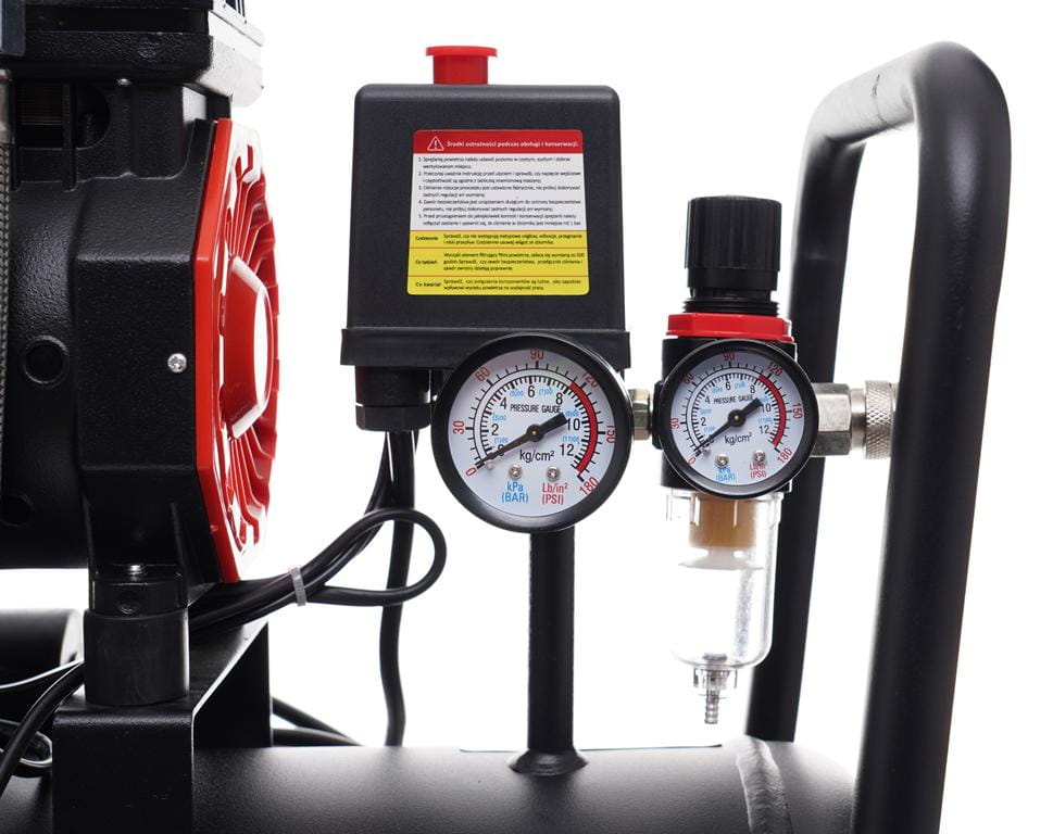 Zbiornik o pojemności 24 litrów pozwala na krótkie, przerywane prace bez ciągłej pracy silnika. Ciśnienie robocze do 8 bar jest wystarczające do obsługi większości pneumatycznych narzędzi warsztatowych i akcesoriów do pompowania.