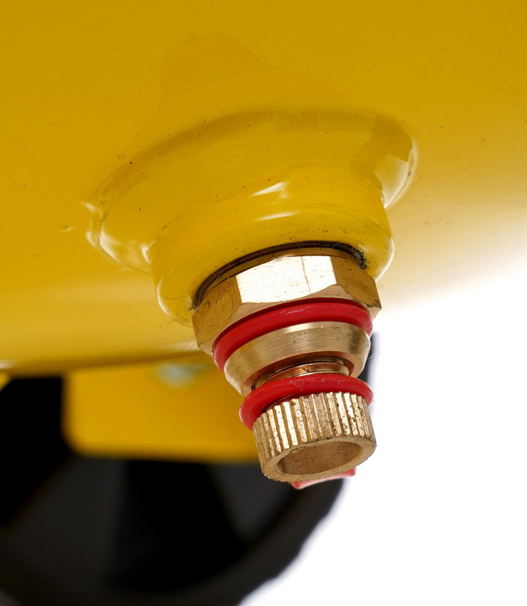 Układ pionowy zmniejsza ślad powierzchniowy urządzenia. Zbiornik 30 litrów zapewnia wystarczający bufor powietrza do zasilania narzędzi pneumatycznych z krótkotrwałymi skokami zapotrzebowania, bez ciągłej pracy silnika.