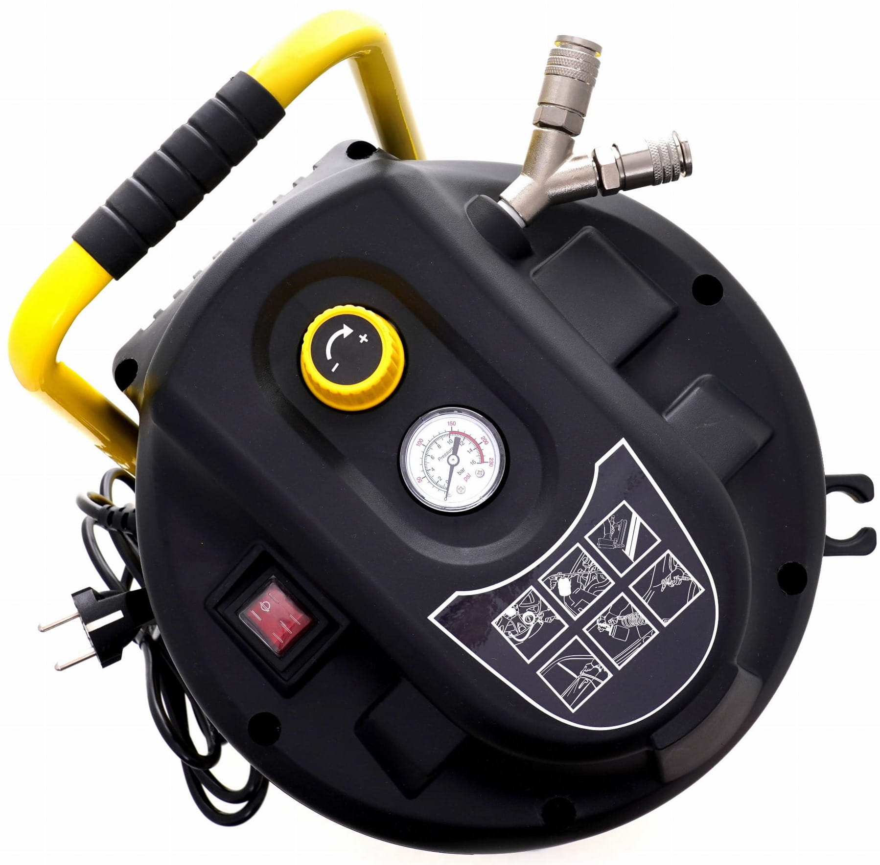 Bezolejowy układ sprężający nie wymaga uzupełniania oleju. Zaleca się regularne odwadnianie zbiornika przez zawór spustowy — skroplona woda zbierająca się na dnie zbiornika przyspiesza korozję i skraca jego żywotność. Częstotliwość odwadniania zależy od wilgotności powietrza i intensywności użytkowania — przy codziennej pracy zaleca się wykonywanie tej czynności po każdej sesji roboczej. Filtr wlotu powietrza należy czyścić lub wymieniać zgodnie z zaleceniami producenta zawartymi w instrukcji obsługi.