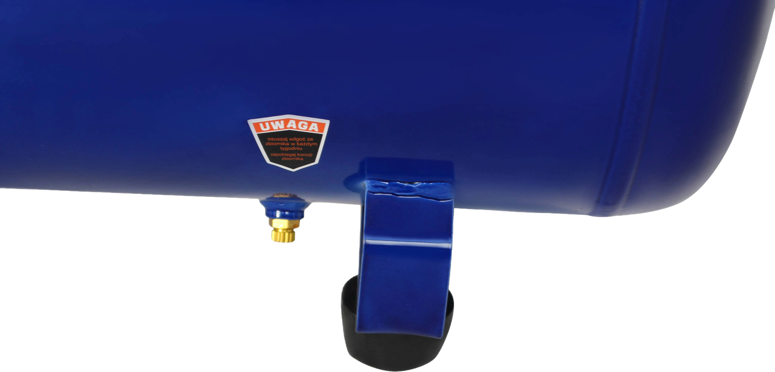 Zbiornik 50L zaprojektowany z uwzględnieniem norm bezpieczeństwa dla ciśnieniowych naczyń powietrznych. Elementy obrotowe wykonano ze stali o podwyższonej wytrzymałości, co wydłuża żywotność mechanizmu tłokowego przy pracy ciągłej.