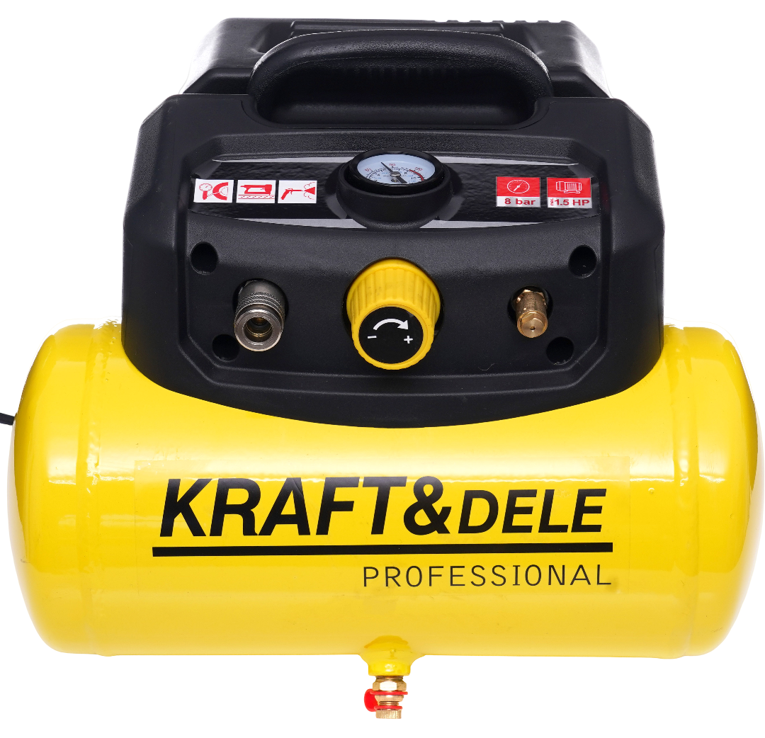 KD1415 to jednofazowy kompresor bezolejowy ze zbiornikiem 6 litrów, przeznaczony do prac serwisowych, warsztatowych i przydomowych. Bezolejowa głowica eliminuje konieczność obsługi układu smarowania, a kompaktowe wymiary i masa 10,5 kg umożliwiają swobodne przenoszenie urządzenia między stanowiskami pracy.