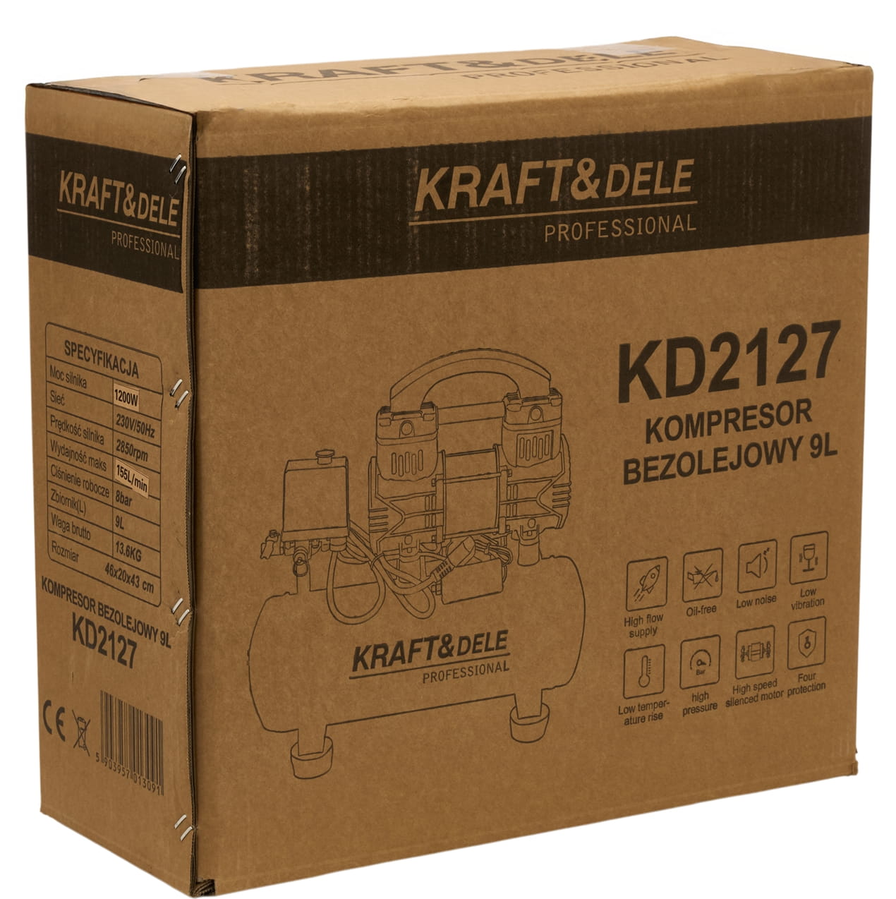 KD2127 to jednofazowy kompresor bezolejowy przeznaczony do lekkich i średnich prac warsztatowych oraz domowych. Kompaktowa obudowa i masa 12,5 kg umożliwiają łatwe przemieszczanie urządzenia między stanowiskami pracy, a bezolejowy układ sprężający eliminuje konieczność regularnej wymiany oleju i zapewnia czyste powietrze robocze.