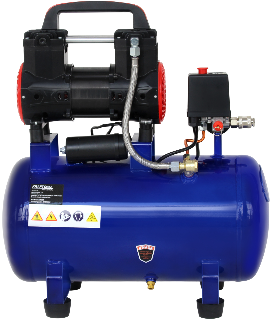 KD4091 to sprężarka bezolejowa o pojemności zbiornika 30 litrów, przeznaczona do zastosowań warsztatowych i domowych wymagających czystego, wolnego od oleju sprężonego powietrza. Bezolejowy układ tłokowy eliminuje kontaminację powietrza roboczego, co ma kluczowe znaczenie przy malowaniu natryskowym oraz obsłudze precyzyjnych narzędzi pneumatycznych.