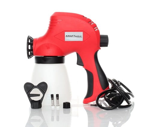 Kompresor dostarcza sprężone powietrze do pistoletów natryskowych używanych przy malowaniu powierzchni drewnianych, metalowych i innych materiałów.