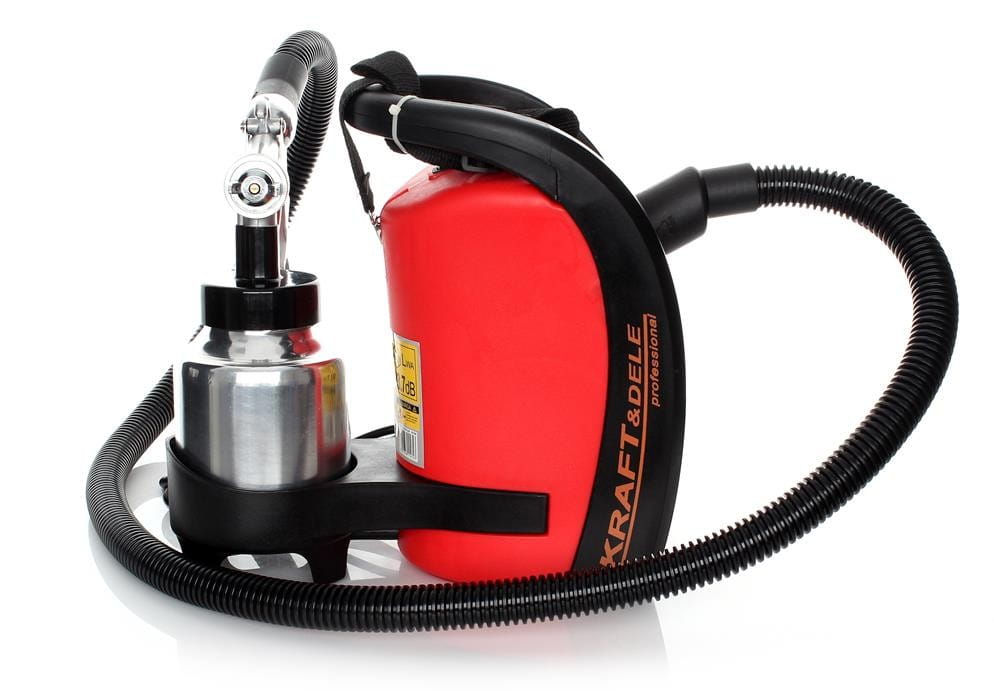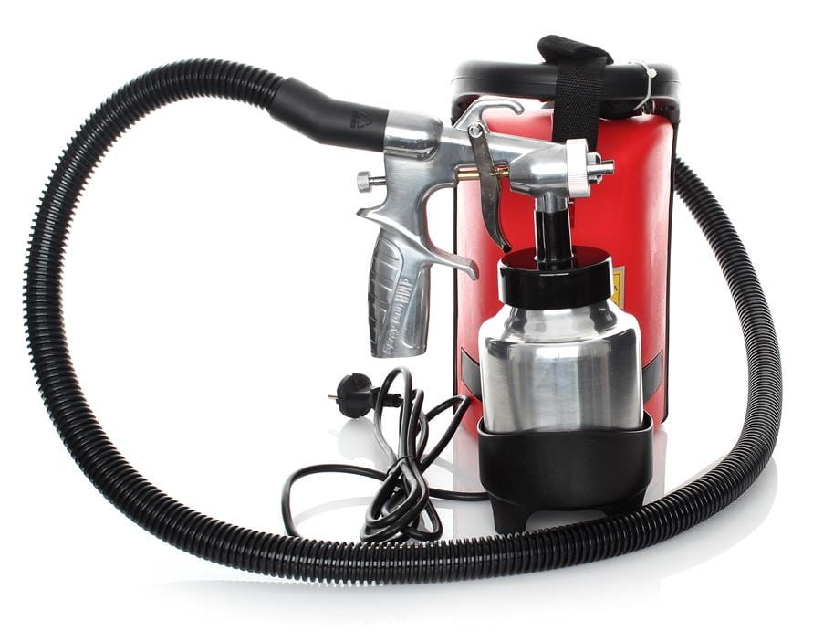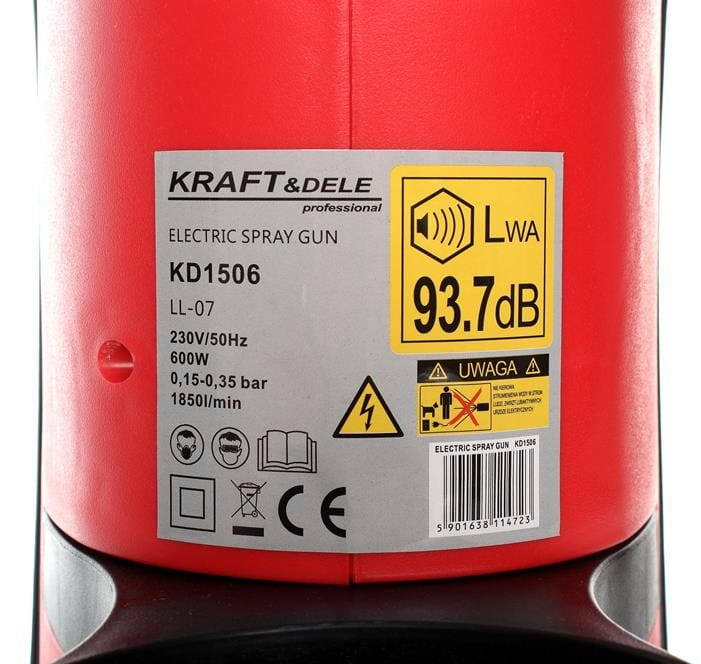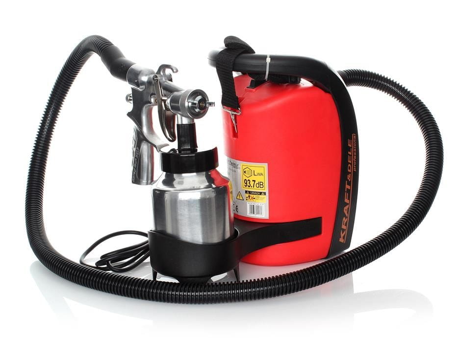 KD1506 to wielostopniowe urządzenie natryskowe z wbudowanym pistoletem, przeznaczone do malowania powierzchni farbami wodnymi i emulsjami. Niskie ciśnienie robocze na poziomie 0,15 bar ogranicza rozpraszanie aerozolu w powietrzu, co zmniejsza zużycie materiału i poprawia warunki pracy. Urządzenie zasilane jest ze standardowego gniazda 230 V i nie wymaga zewnętrznego kompresora sprężonego powietrza.