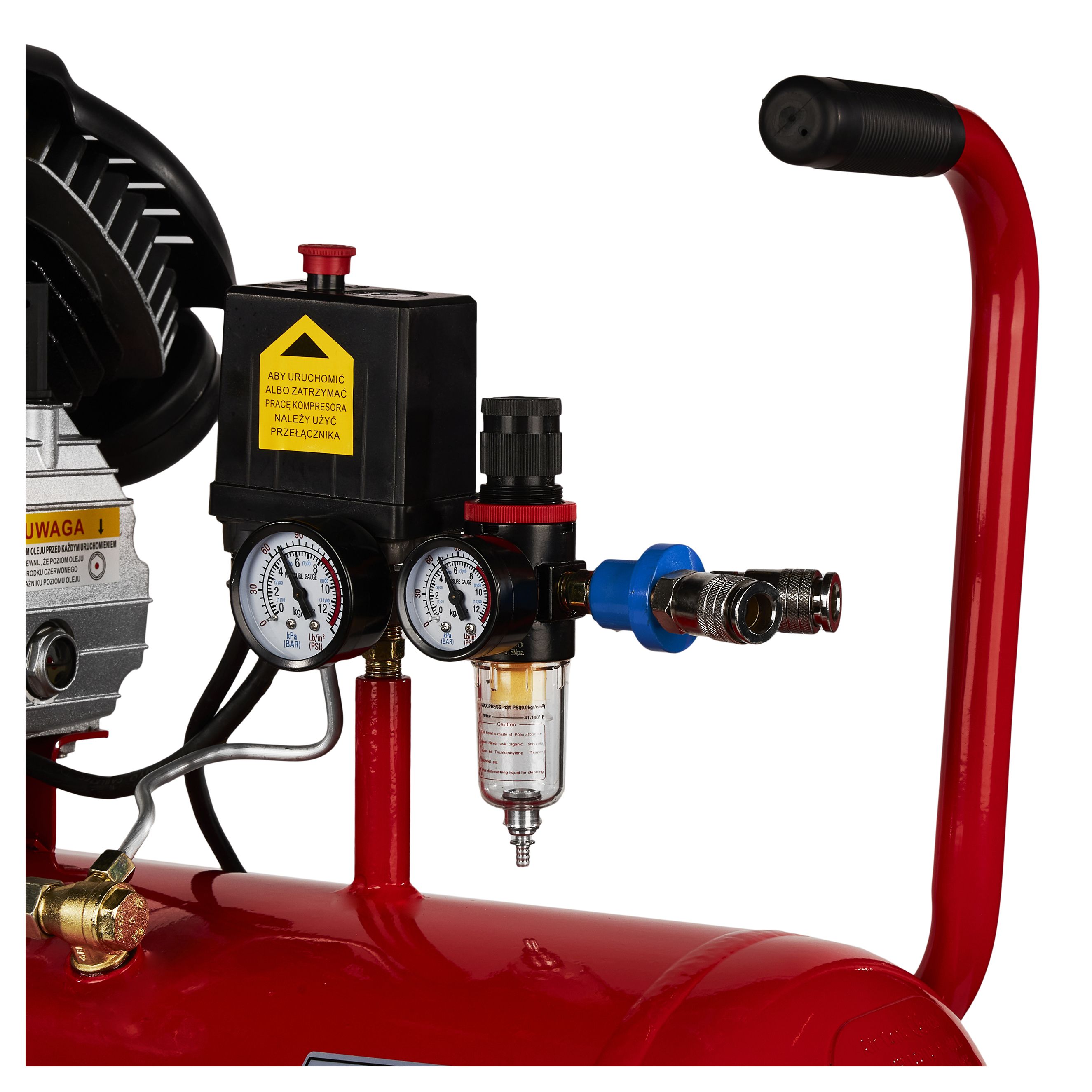 2 manometry i wbudowany reduktor ułatwiają ustawienie parametrów pod konkretne zadanie oraz szybkie monitorowanie pracy sprężarki.