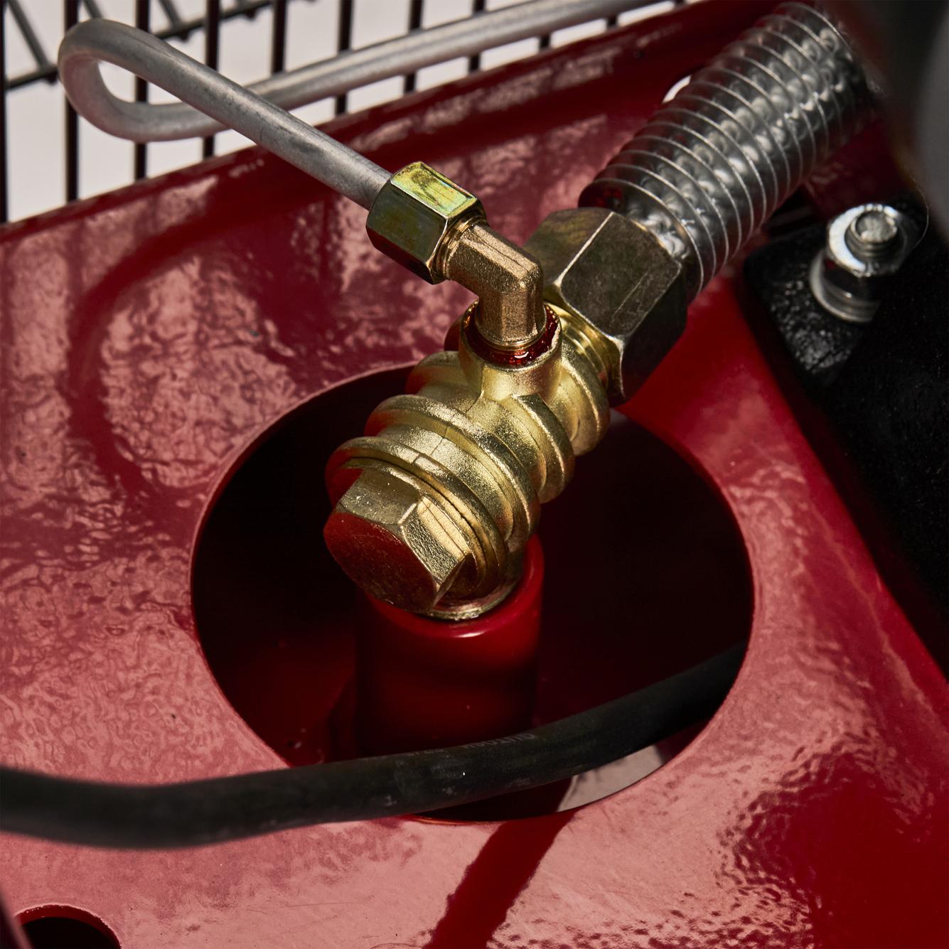 Wbudowany reduktor umożliwia ustawienie ciśnienia roboczego odpowiedniego dla konkretnego narzędzia. Większość pneumatycznych narzędzi ręcznych (klucze udarowe, szlifierki, pistolety lakiernicze) wymaga ciśnienia w zakresie 4–6 bar — reduktor pozwala precyzyjnie dostosować wartość bez odłączania narzędzia.