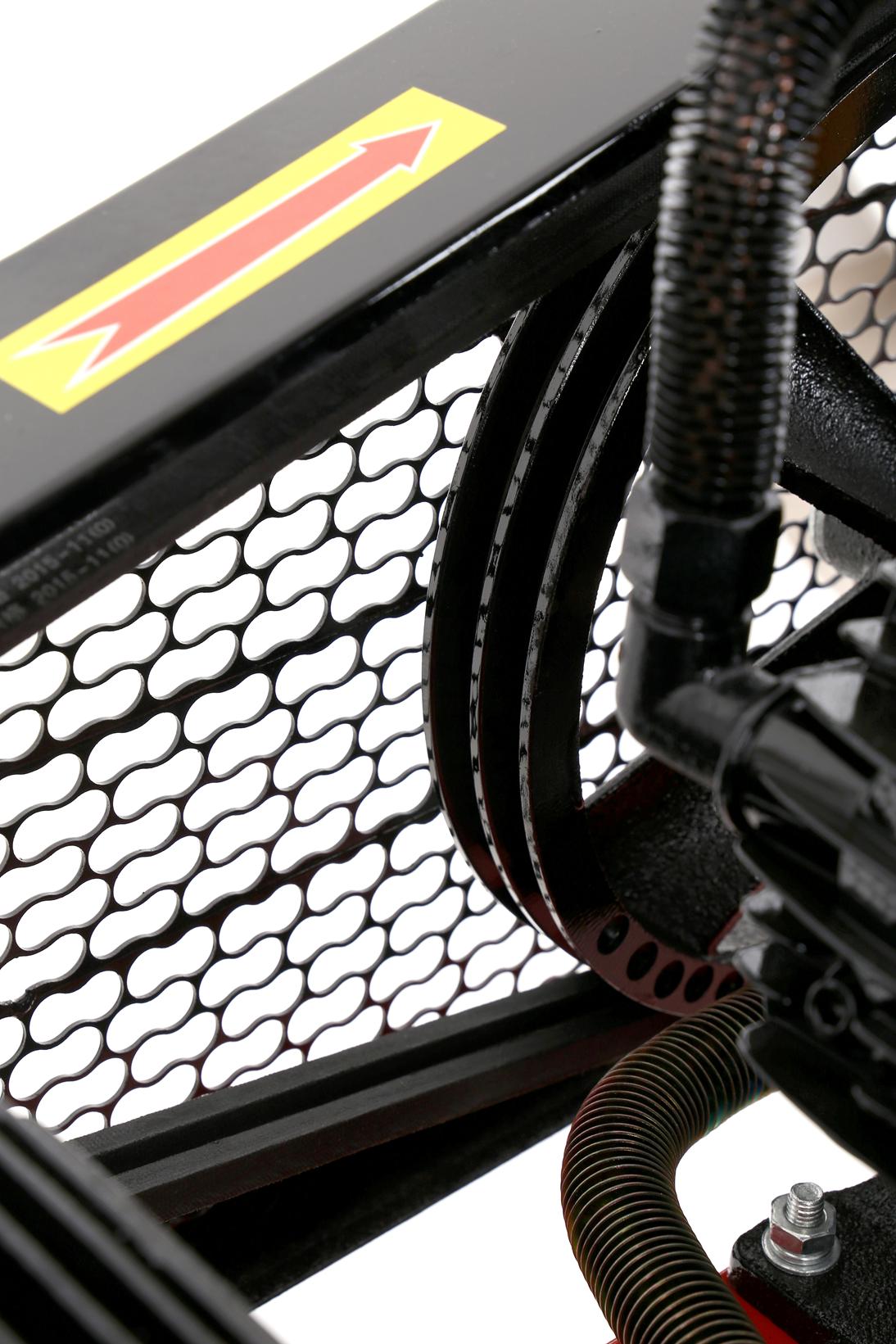 Silnik indukcyjny przenosi napęd na głowicę sprężającą poprzez pasek klinowy. Taki układ pozwala na pracę głowicy z niższą prędkością obrotową niż silnik, co przekłada się na mniejsze wibracje i zużycie łożysk w porównaniu z kompresorami o napędzie bezpośrednim. Pasek pełni też rolę elementu amortyzującego przeciążenia.