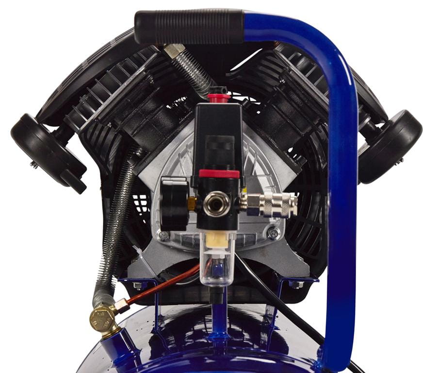 Dwa tłoki pracujące równolegle zwiększają wydajność zasysania do 530 l/min przy jednoczesnym ograniczeniu obciążeń termicznych silnika. Przekłada się to na możliwość pracy ciągłej bez konieczności przerw wymaganych przez sprężarki jednotłokowe.