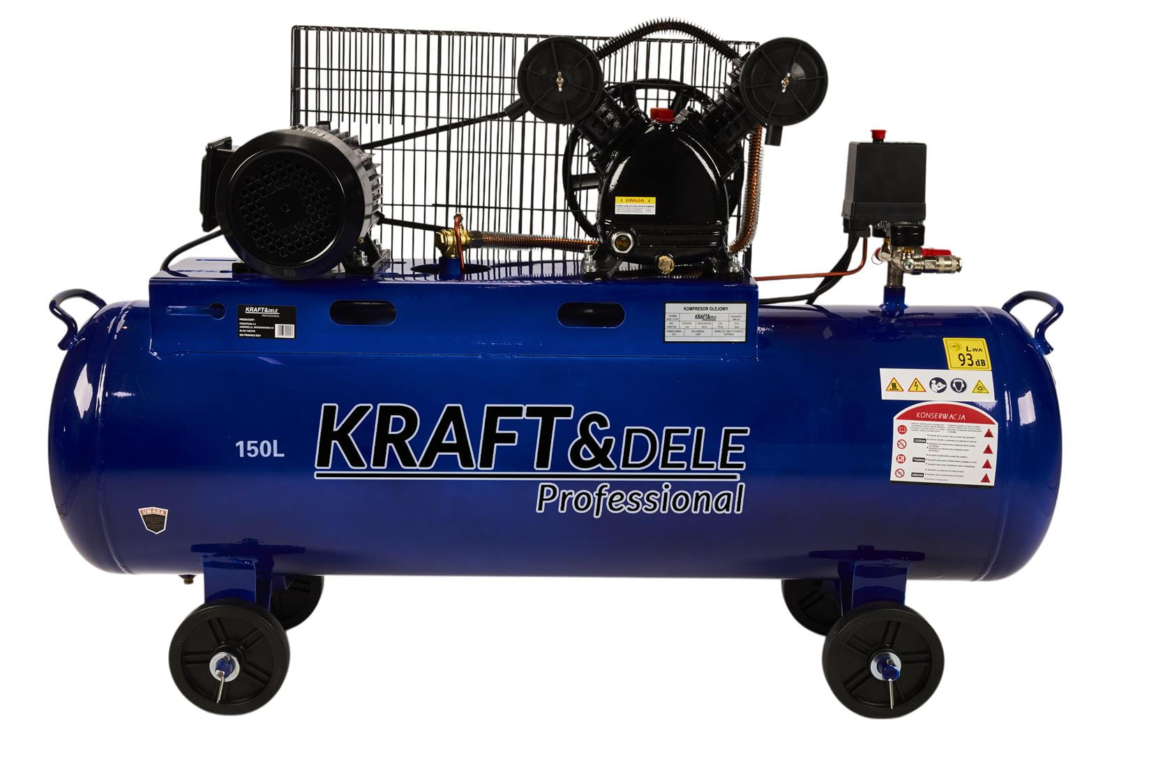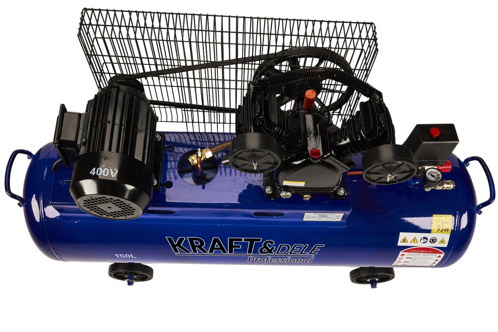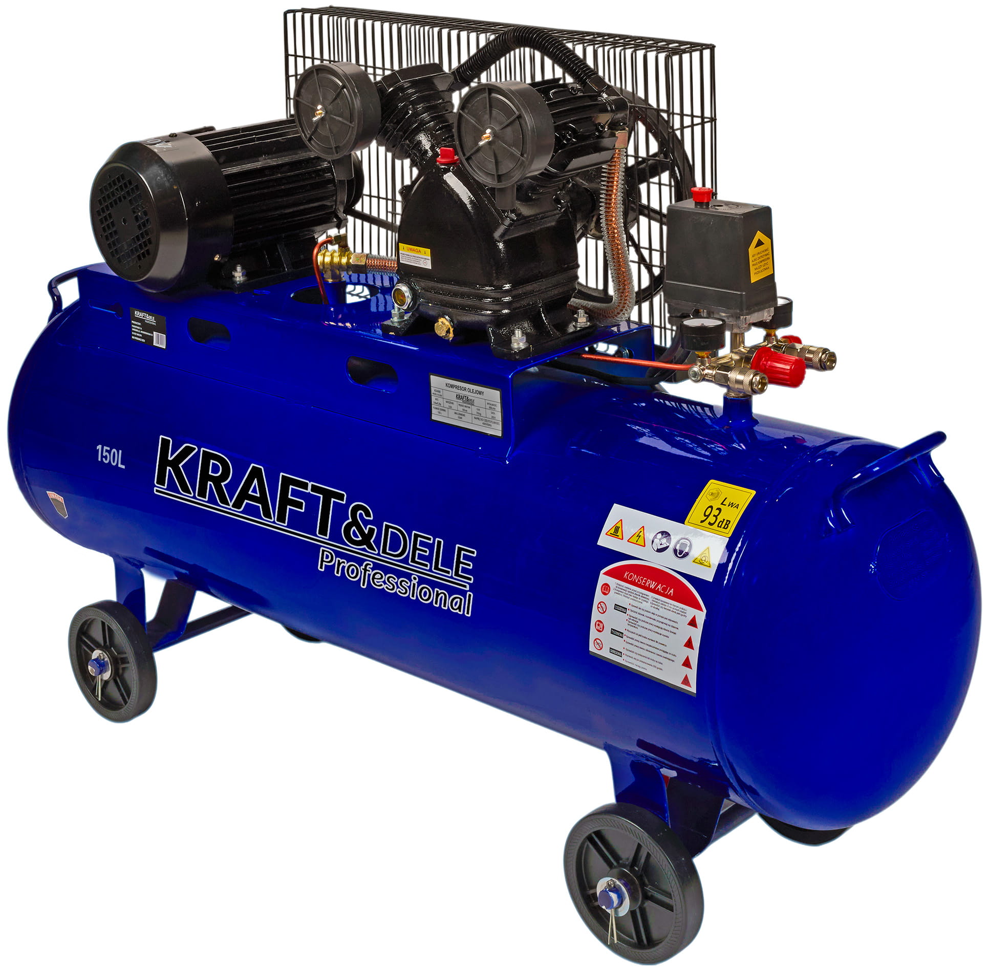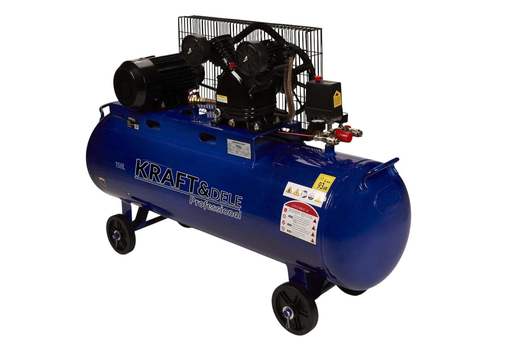 KD4060 to stacjonarny kompresor olejowy z dwutłokowym silnikiem zasilanym z sieci trójfazowej 400V. Zbiornik o pojemności 150 litrów i wydajność na poziomie 660 l/min predysponują go do ciągłej pracy przy obsłudze narzędzi pneumatycznych w warsztacie, na budowie lub w zakładzie produkcyjnym.