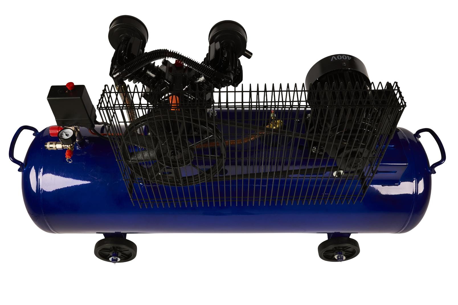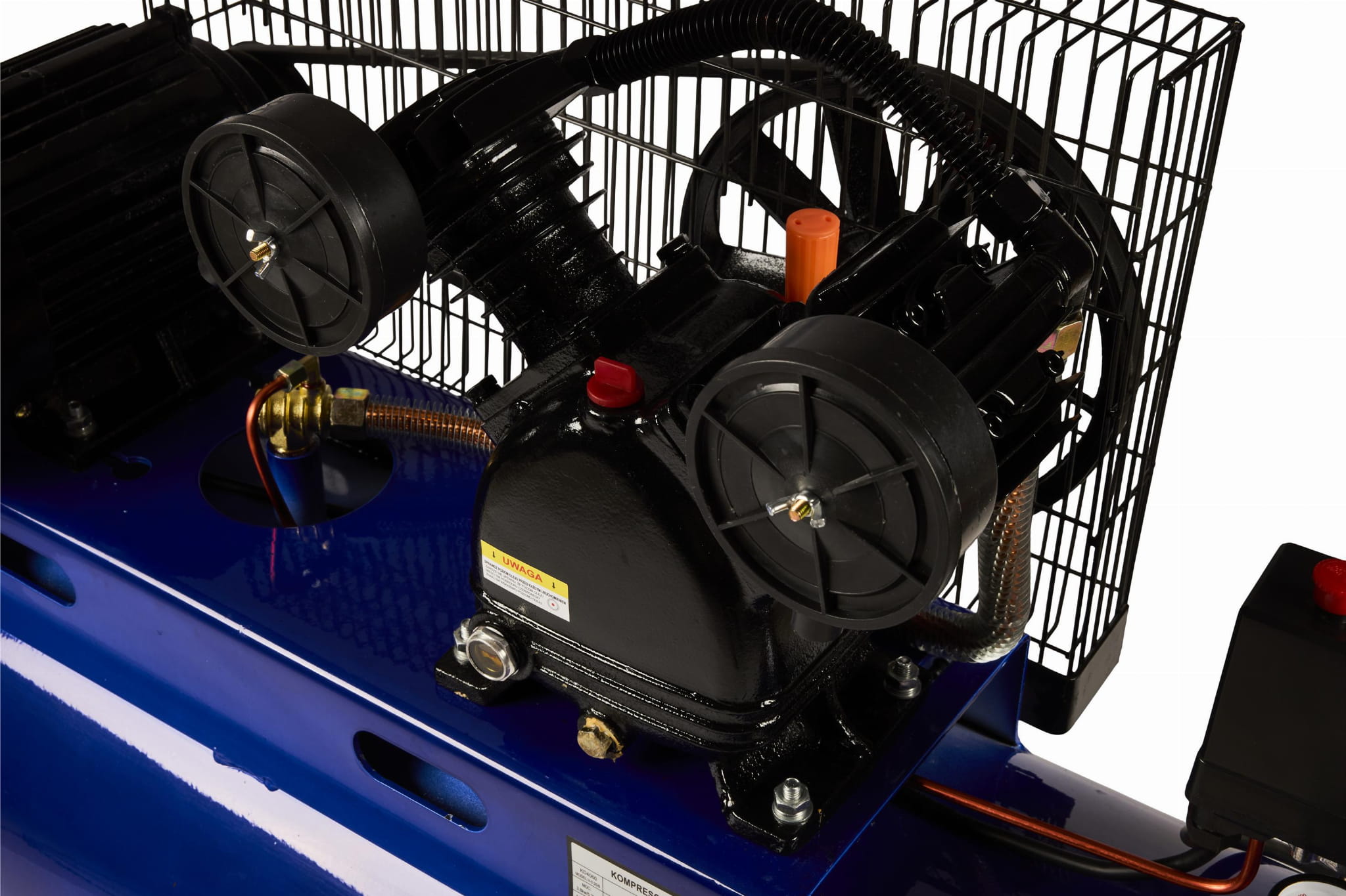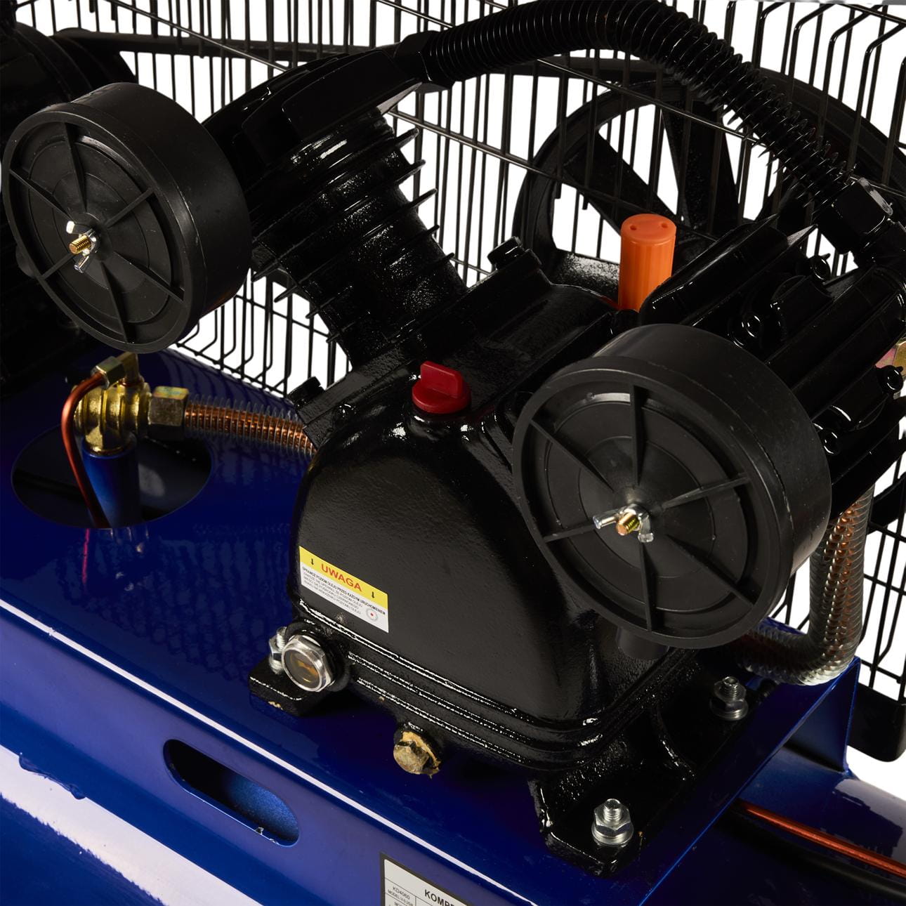 Dwa tłoki pracujące równolegle pozwalają na utrzymanie stałego przepływu powietrza przy długotrwałym obciążeniu. Rozwiązanie stosowane w kompresach przeznaczonych do intensywnej, ciągłej pracy — zmniejsza ryzyko przegrzania i cykli wyłączeń termicznych.