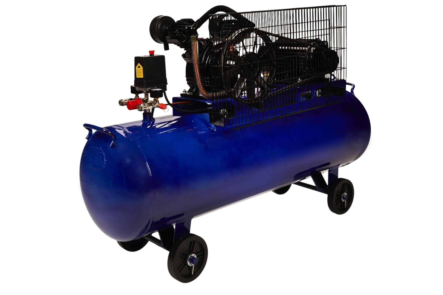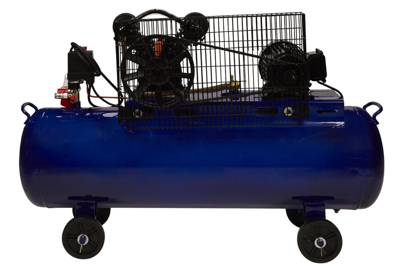 Urządzenie wyposażono w kółka gumowe umożliwiające przemieszczanie kompresora po warsztacie bez konieczności jego podnoszenia — masa własna 78 kg wyklucza transport ręczny bez pomocy.