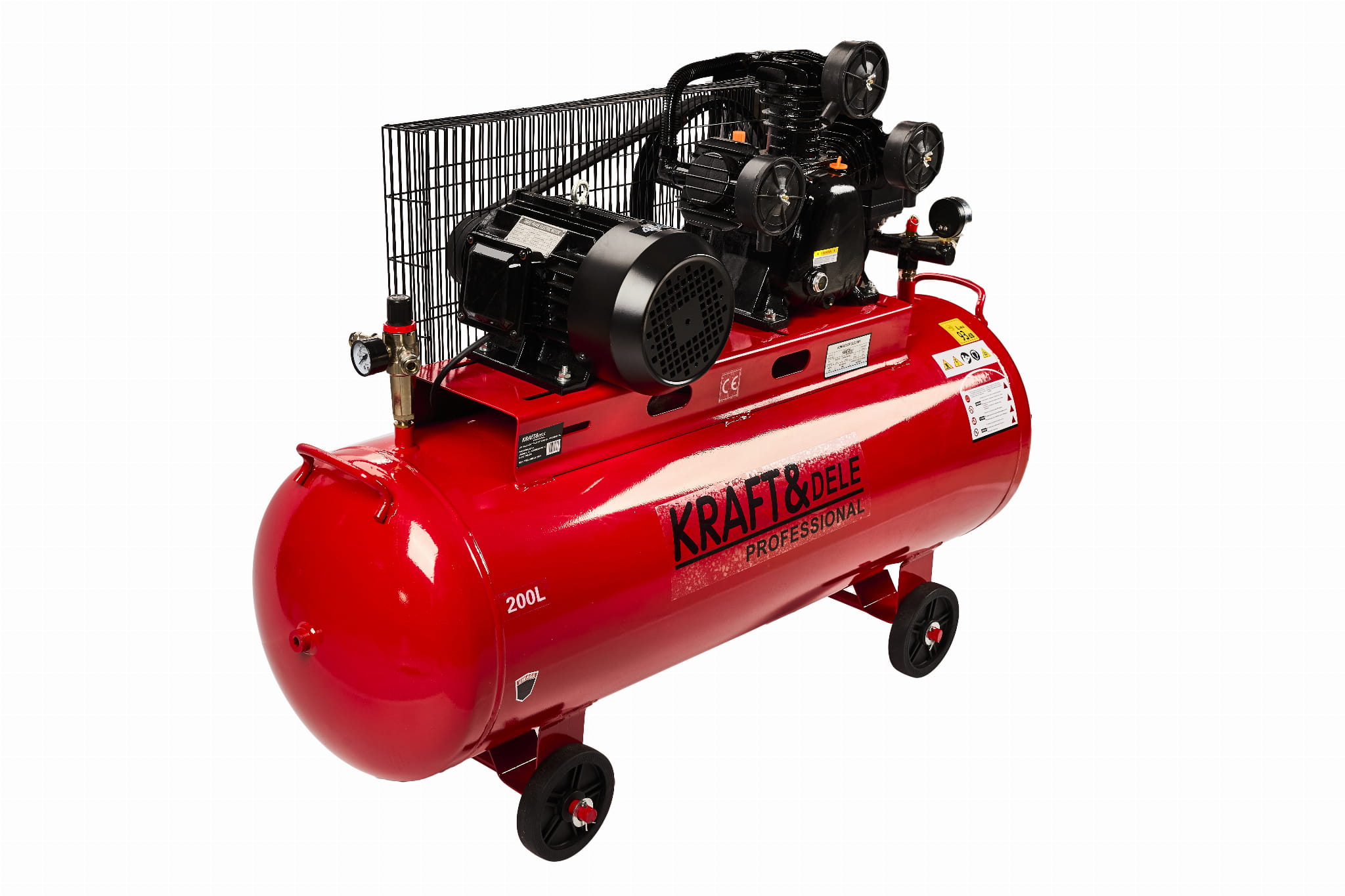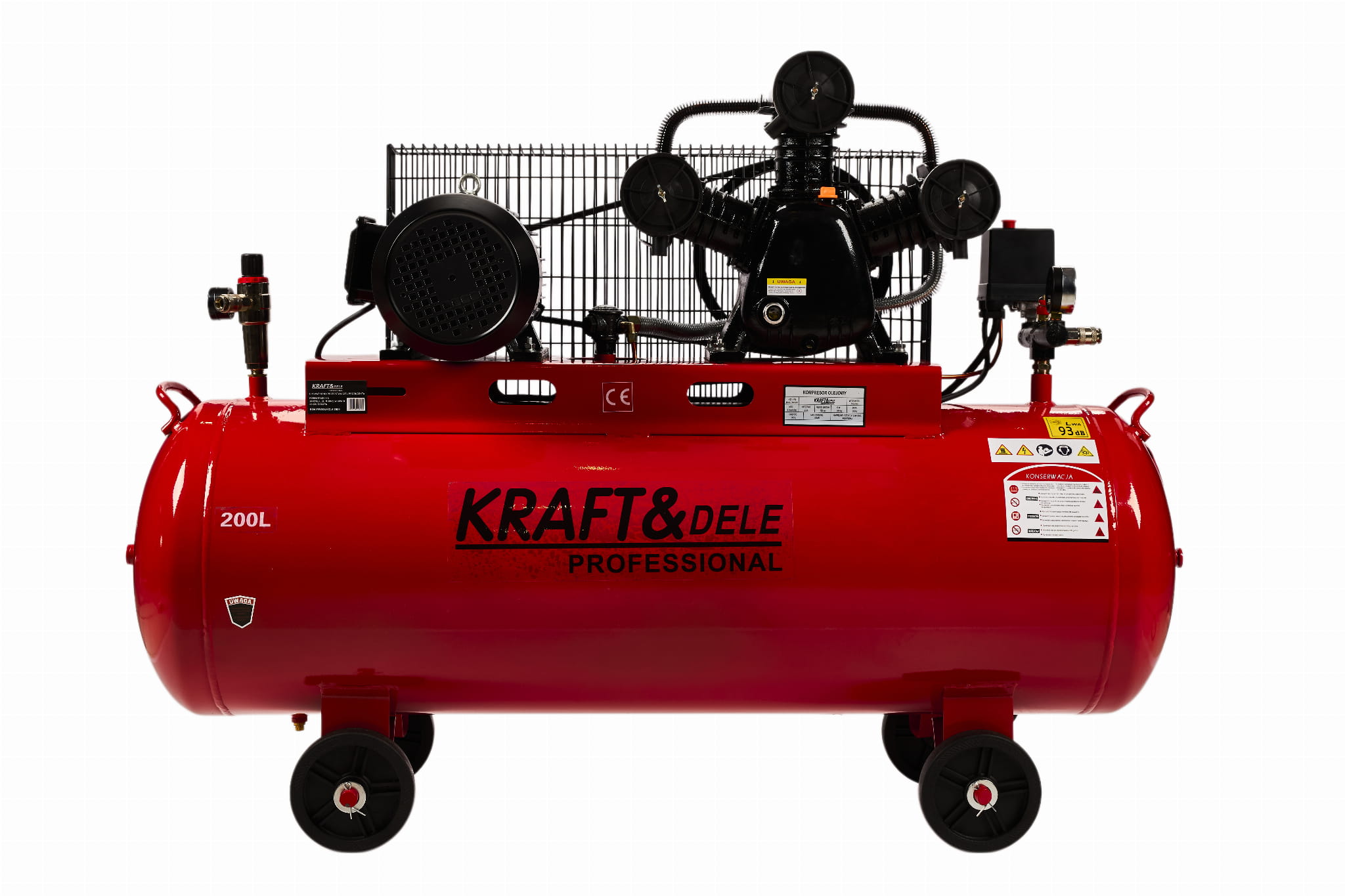 KD1474 to stacjonarny kompresor olejowy marki Kraft&Dele wyposażony w trójcylindrowy silnik z żeliwnym cylindrem i miedzianym uzwojeniem. Zbiornik o pojemności 200 litrów oraz wbudowany separator oleju i wody umożliwiają długotrwałą pracę przy zasilaniu narzędzi pneumatycznych wymagających czystego powietrza.