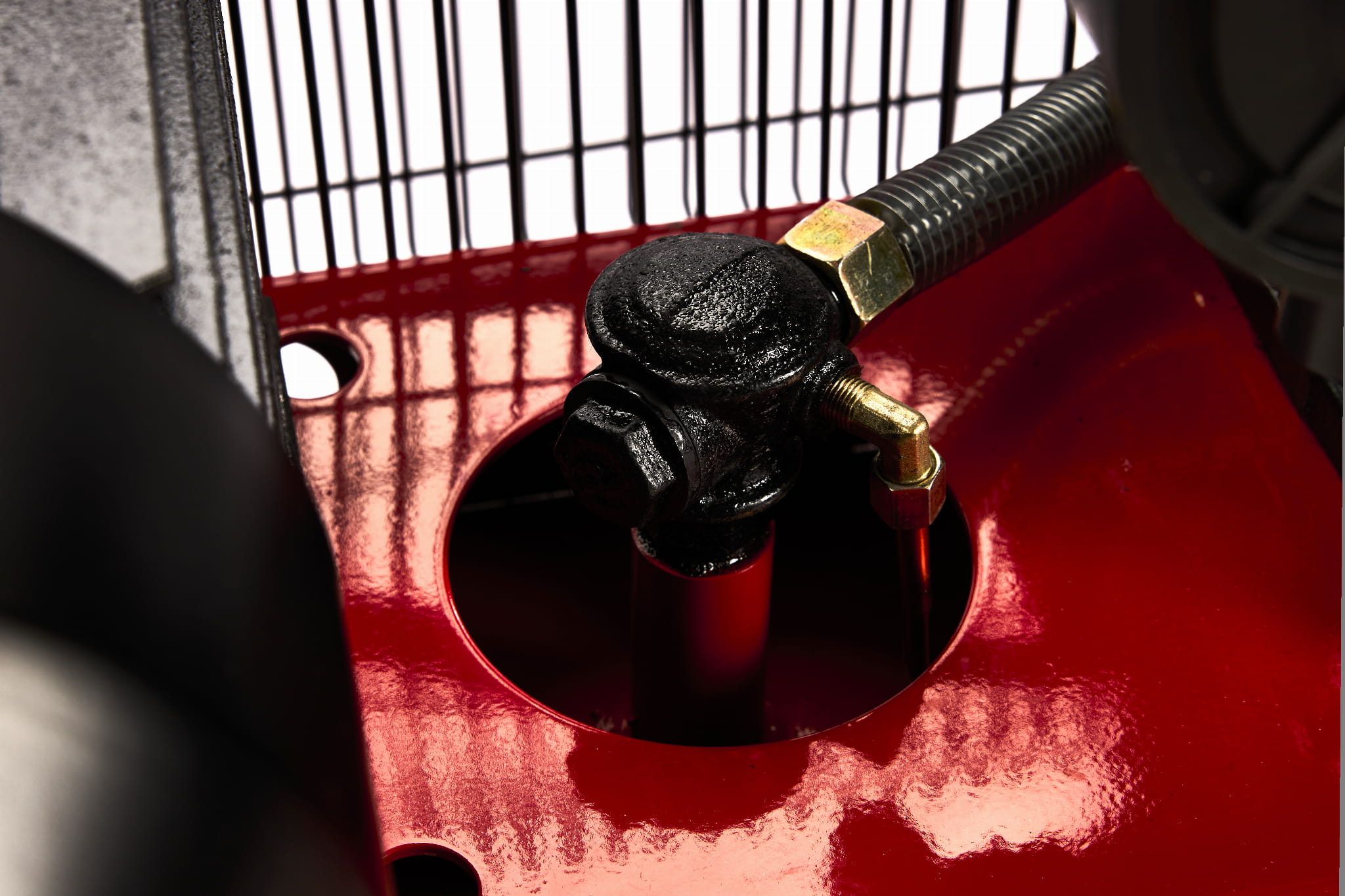 Automatyczny odprężnik usuwa resztkowe ciśnienie z głowicy sprężarki przy każdym zatrzymaniu silnika. Dzięki temu kolejny rozruch następuje bez obciążenia, co zmniejsza zużycie silnika i układu rozruchowego.