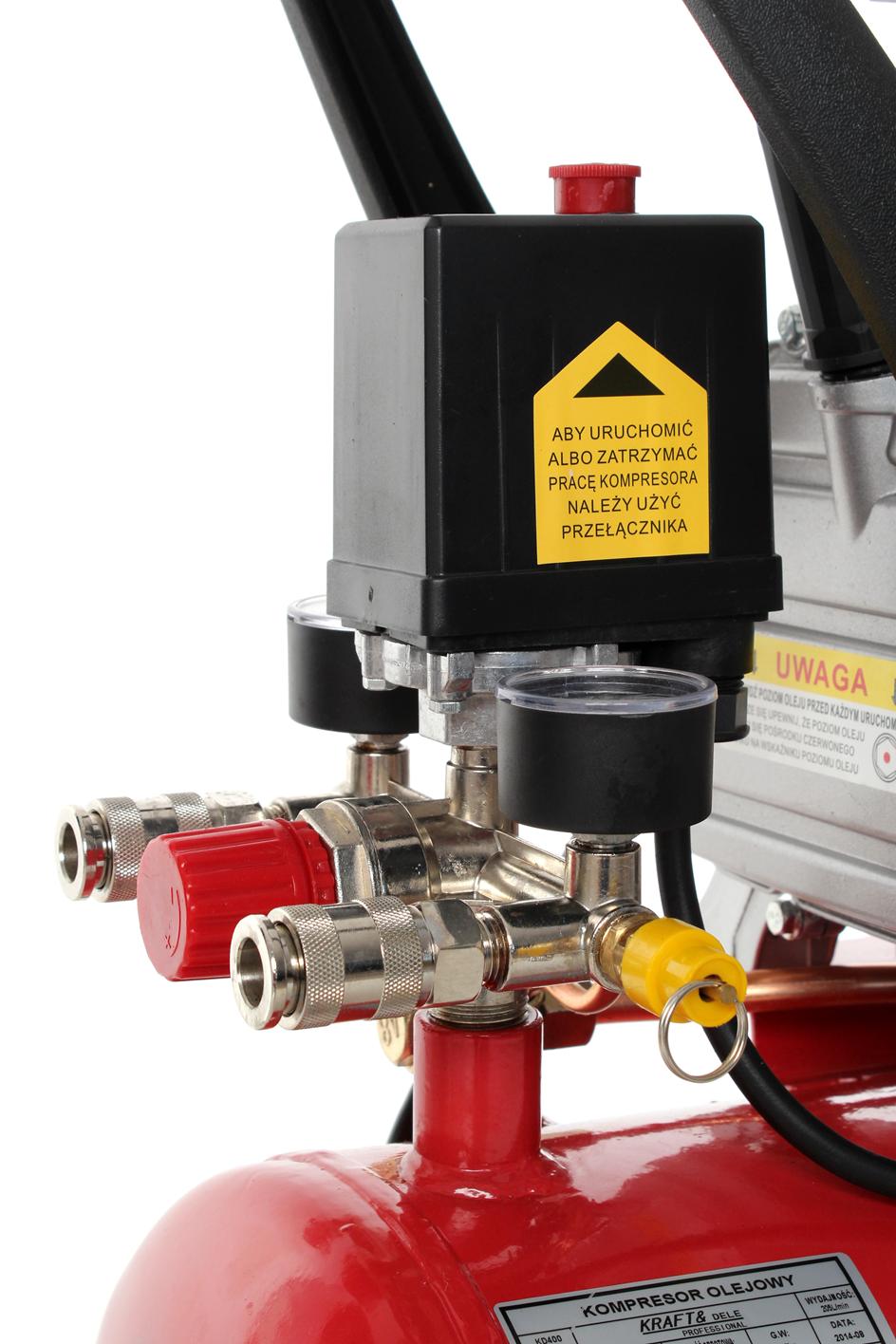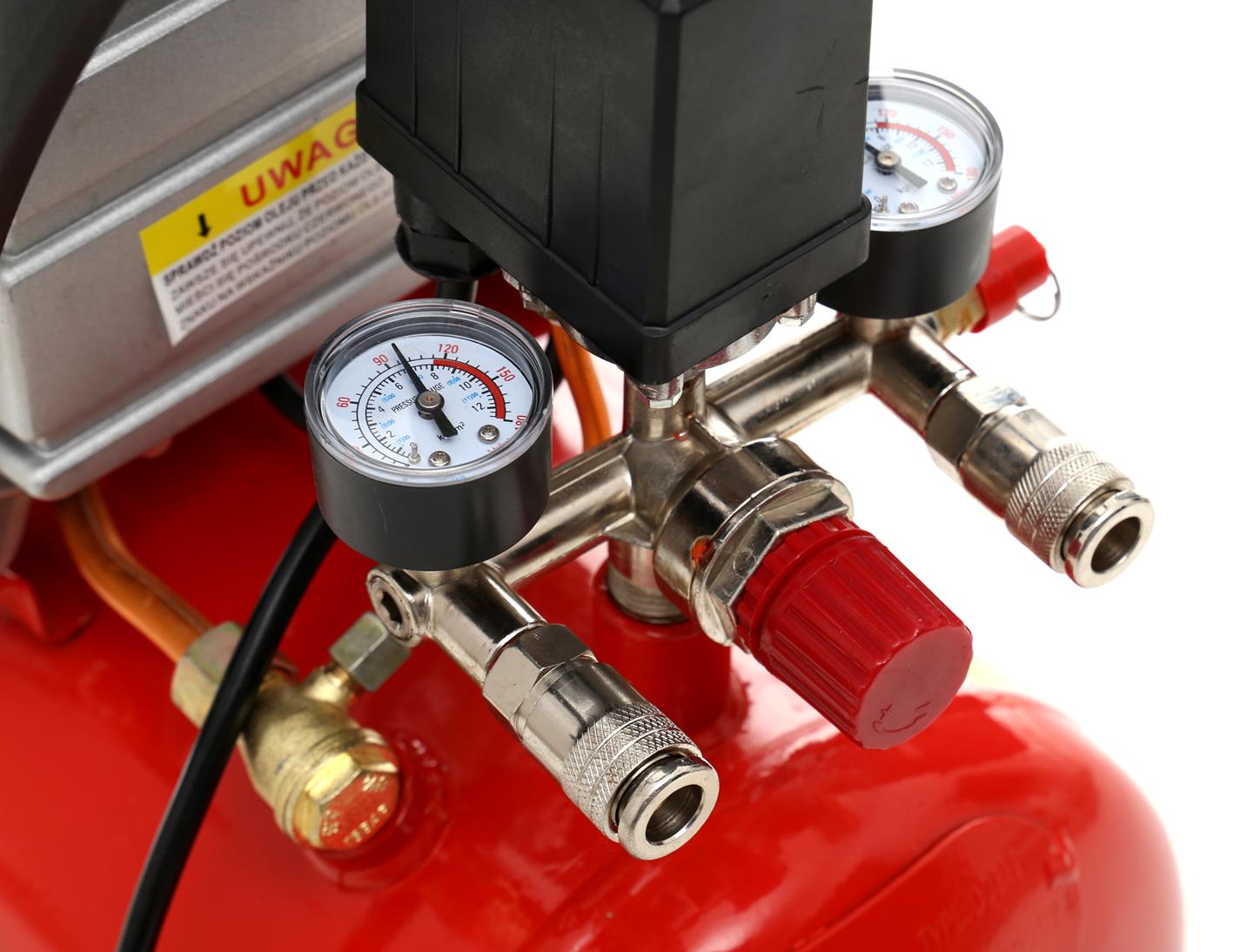 Wbudowany reduktor umożliwia precyzyjne ustawienie ciśnienia roboczego na wyjściu, niezależnie od ciśnienia w zbiorniku. Jest to istotne przy pracy z narzędziami wymagającymi określonego zakresu ciśnienia, np. pistoletami lakierniczymi.
