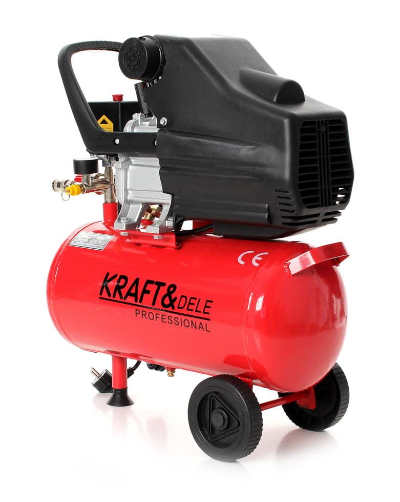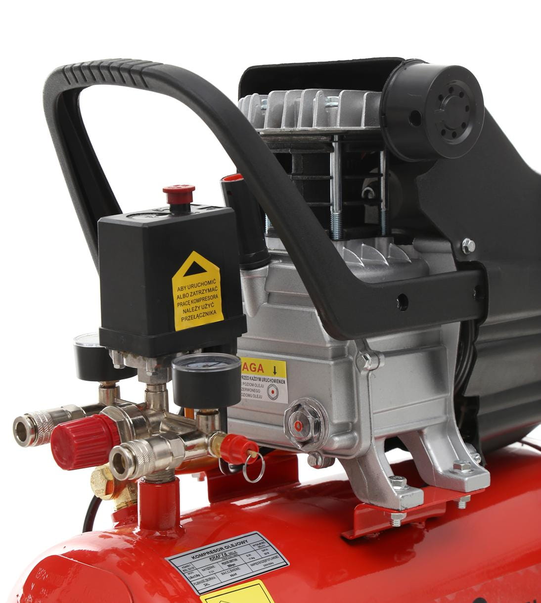 Jednocylindrowy kompresor olejowy ze zbiornikiem 24 litrów, przeznaczony do zasilania narzędzi pneumatycznych w warsztacie i w zastosowaniach domowych. Zestaw obejmuje kompresor oraz 8 akcesoriów pneumatycznych gotowych do użycia bezpośrednio po rozpakowaniu.