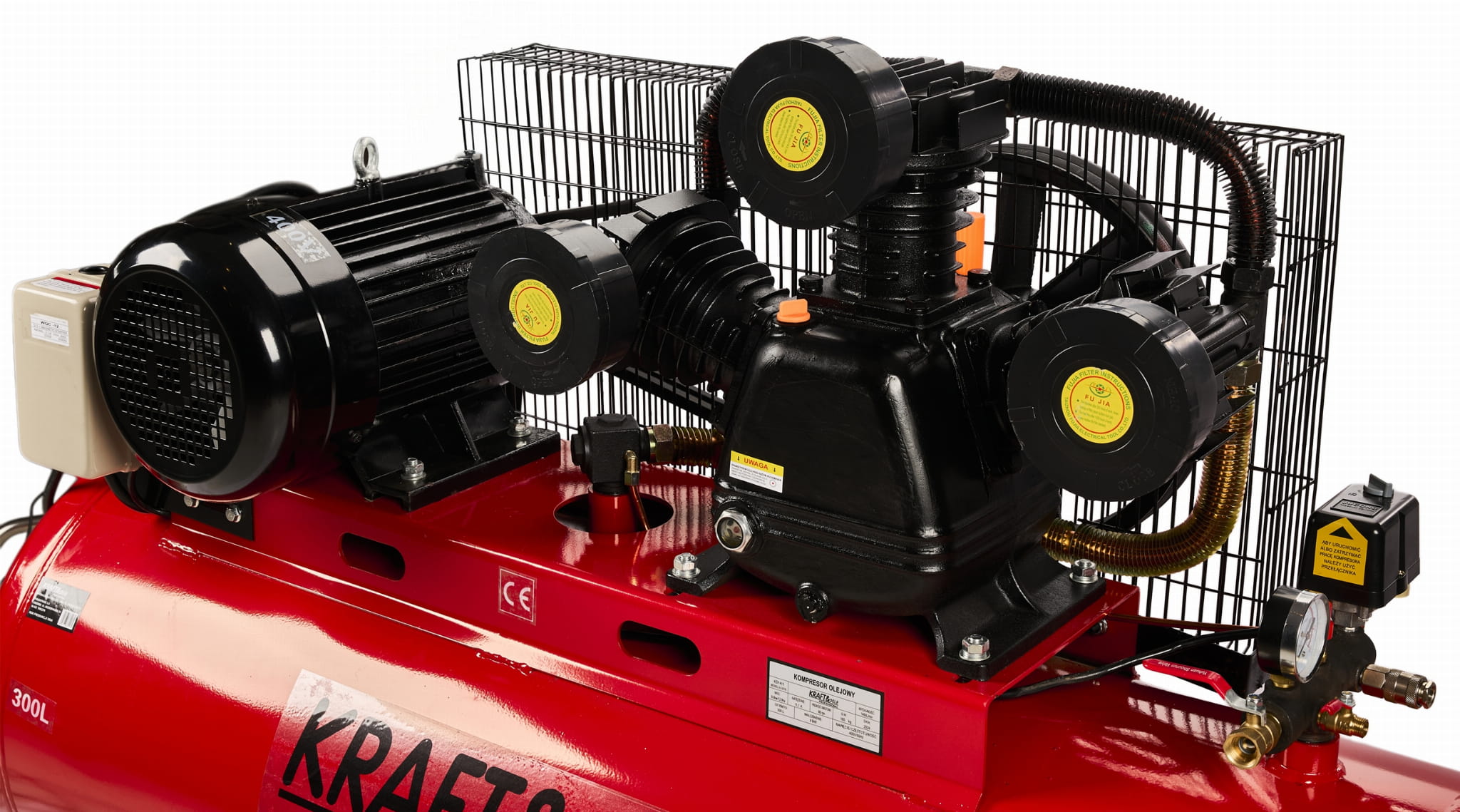 | Wyposażenie | 2 manometry, 3 szybkozłącza, separator z reduktorem, zabezpieczenie przeciwzwarciowe |