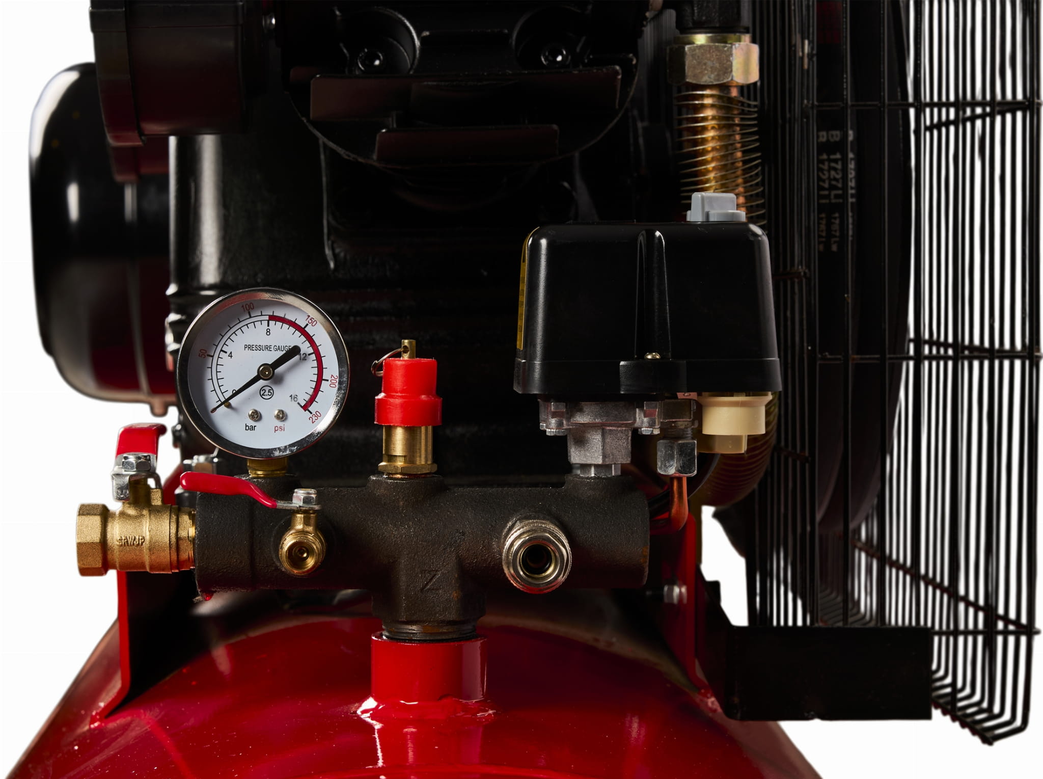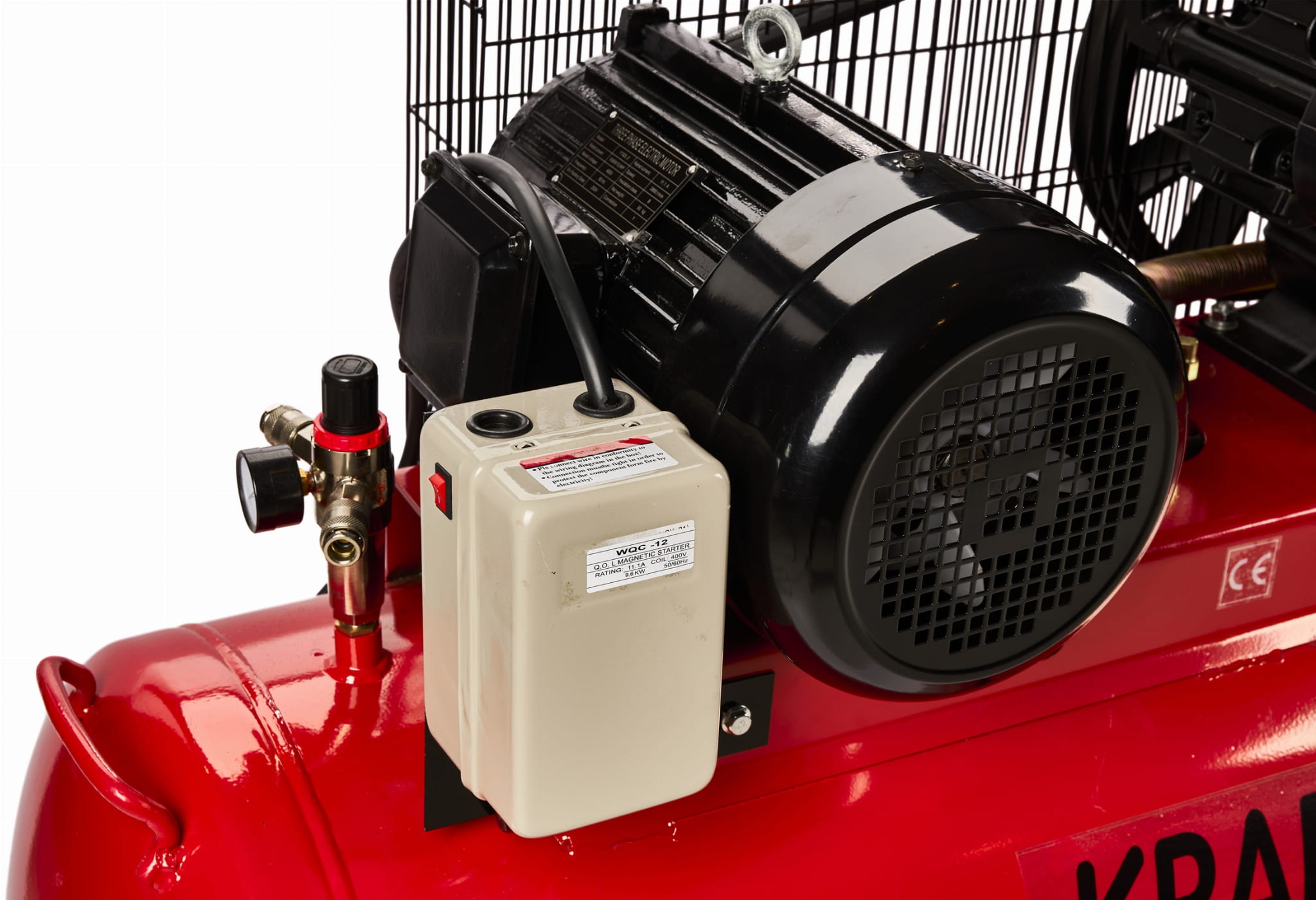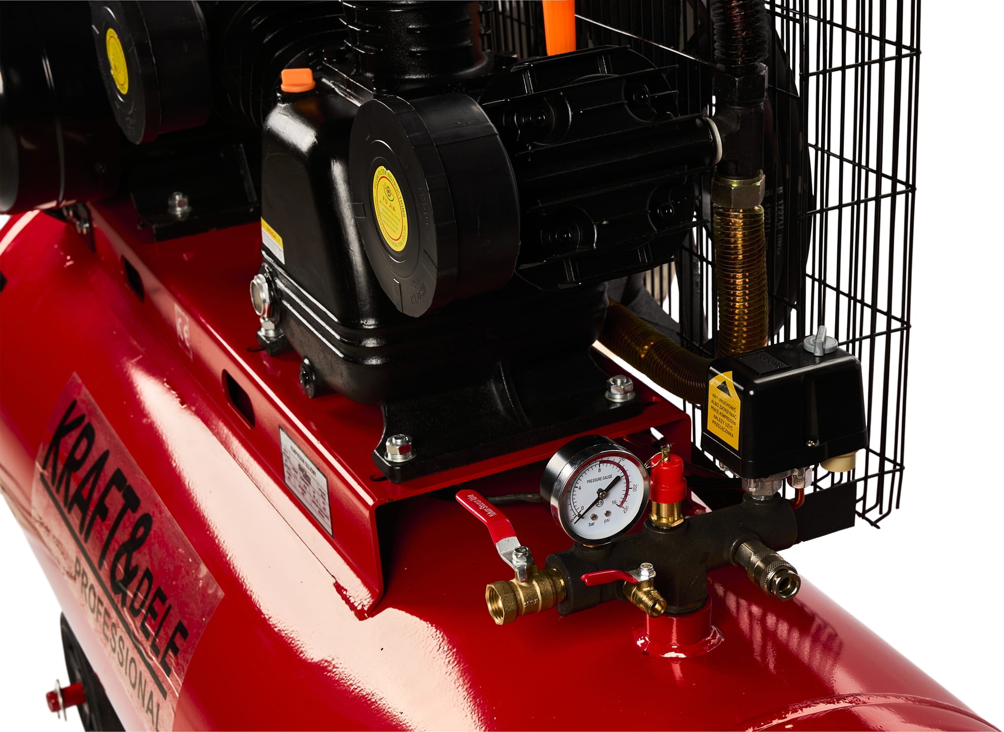 Wbudowany separator oddziela wodę i olej z powietrza tłoczonego do narzędzi — ma to szczególne znaczenie przy malowaniu natryskowym, gdzie zanieczyszczenia powietrza powodują wady powłoki. Reduktor pozwala ustawić ciśnienie wyjściowe niezależnie od ciśnienia w zbiorniku.