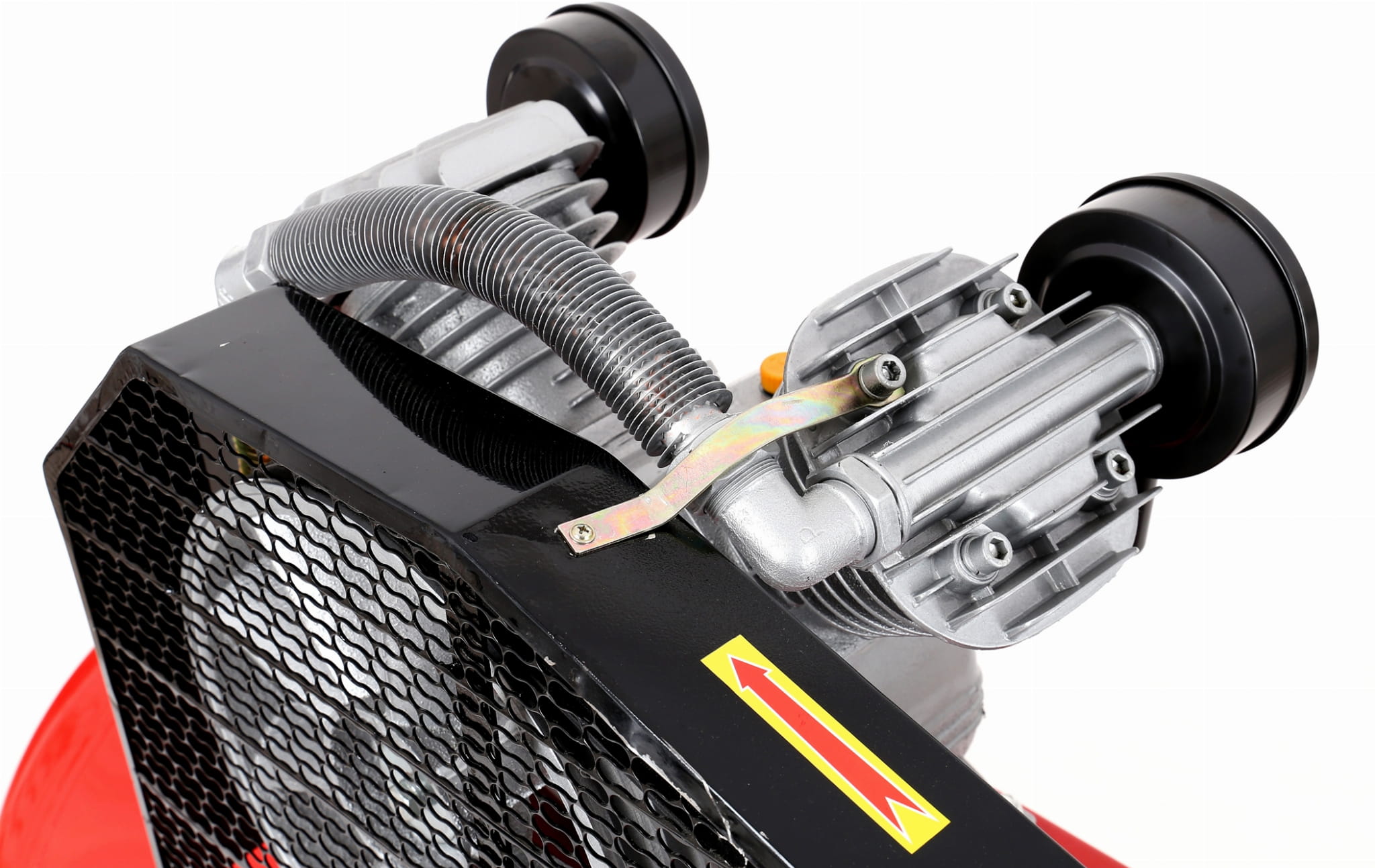 Głowica pompy wyposażona jest w rozbudowane ożebrowanie zwiększające powierzchnię wymiany ciepła. Skuteczne odprowadzanie ciepła podczas długotrwałej pracy ogranicza ryzyko przegrzania i przekłada się na stabilność parametrów sprężonego powietrza niezależnie od czasu pracy urządzenia.