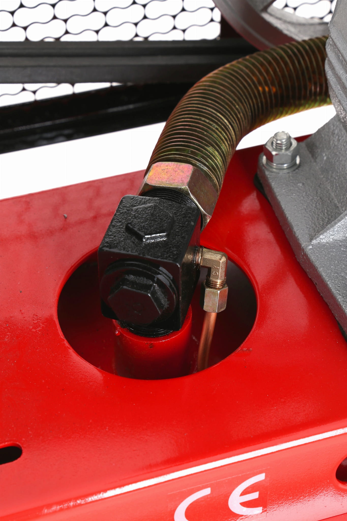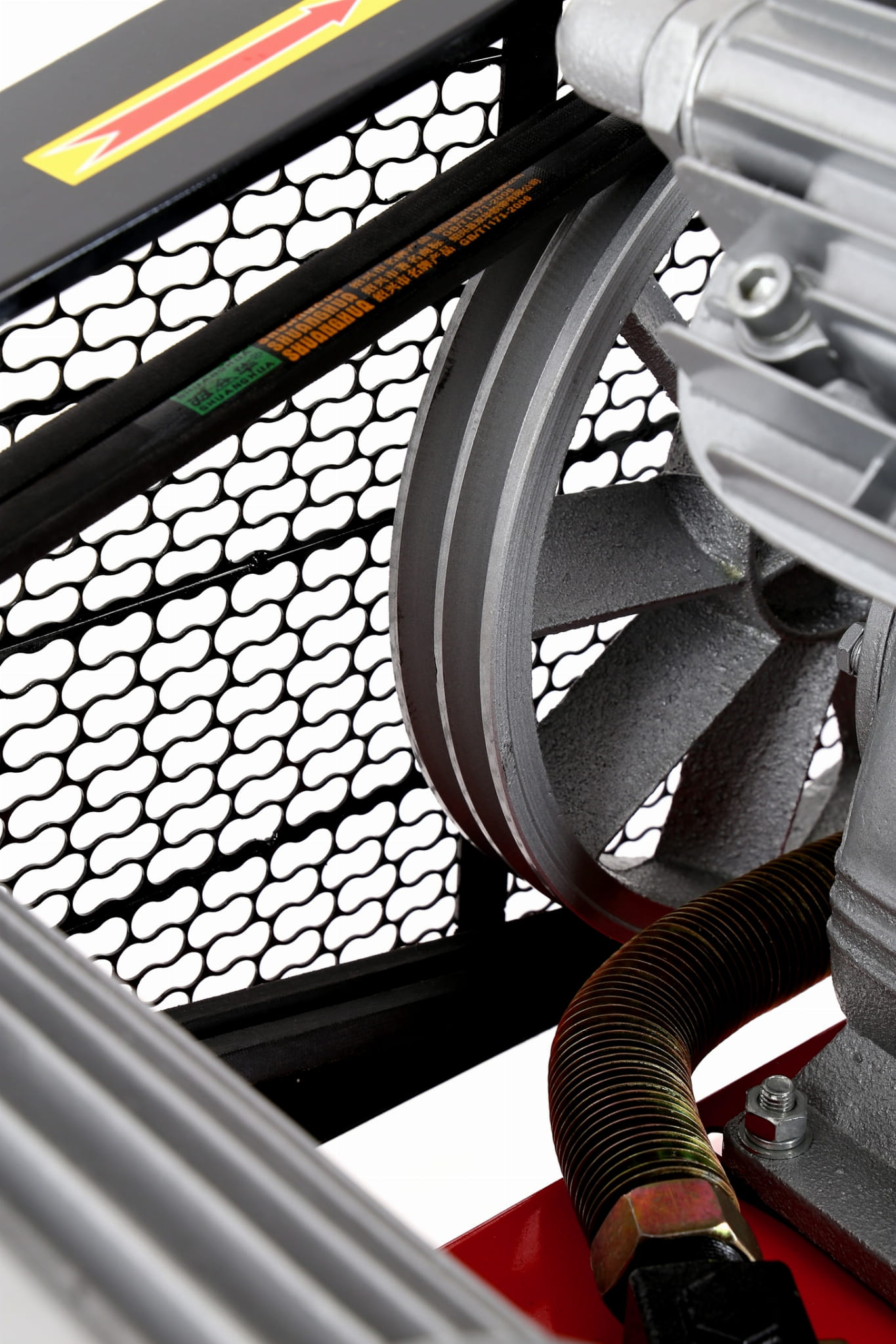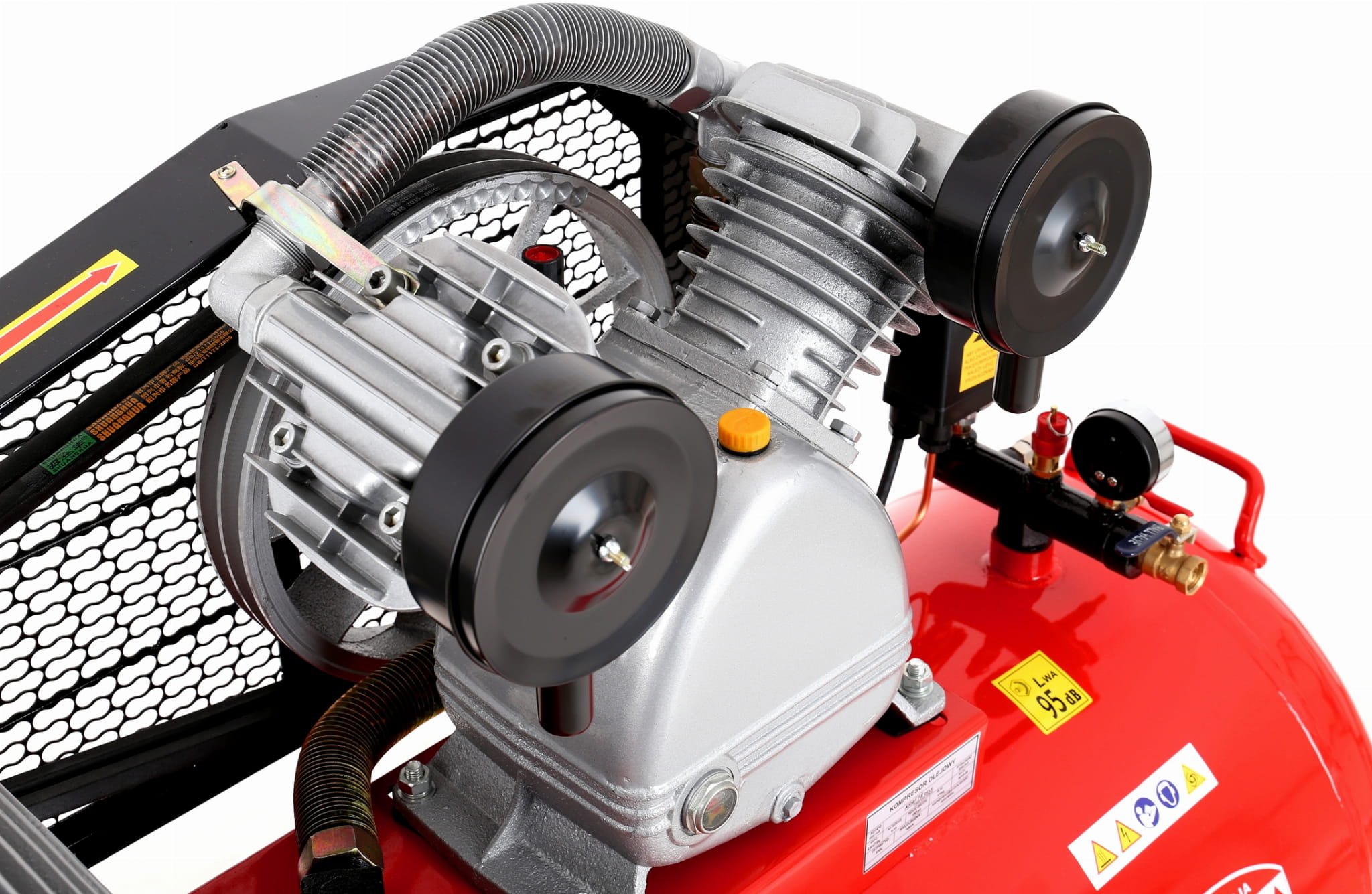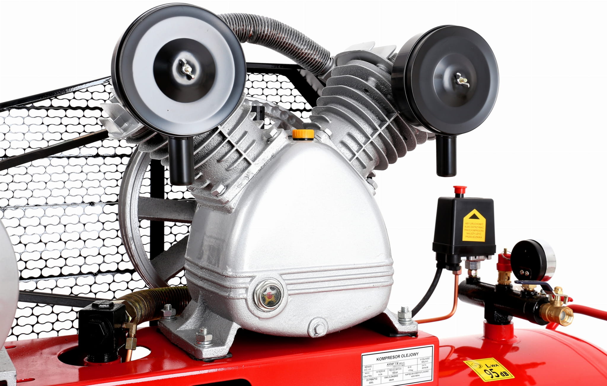 Dwa tłoki o średnicy 90 mm pracują z prędkością 1060 rpm, co przekłada się na niższe zużycie i cieplne obciążenie układu w porównaniu z pompami bezolejoymi. Smarowanie olejowe umożliwia wielogodzinną pracę ciągłą bez ryzyka przegrzania — warunek konieczny przy maszynach CNC, pistoletach do malowania natryskowego czy szlifierkach kątowych dużej mocy.